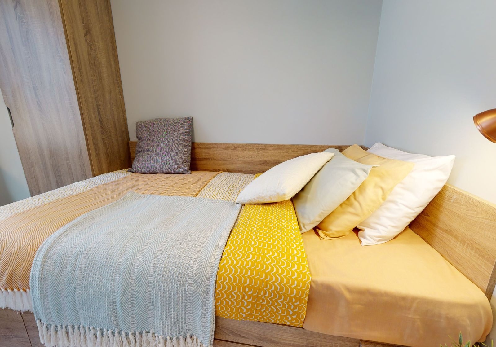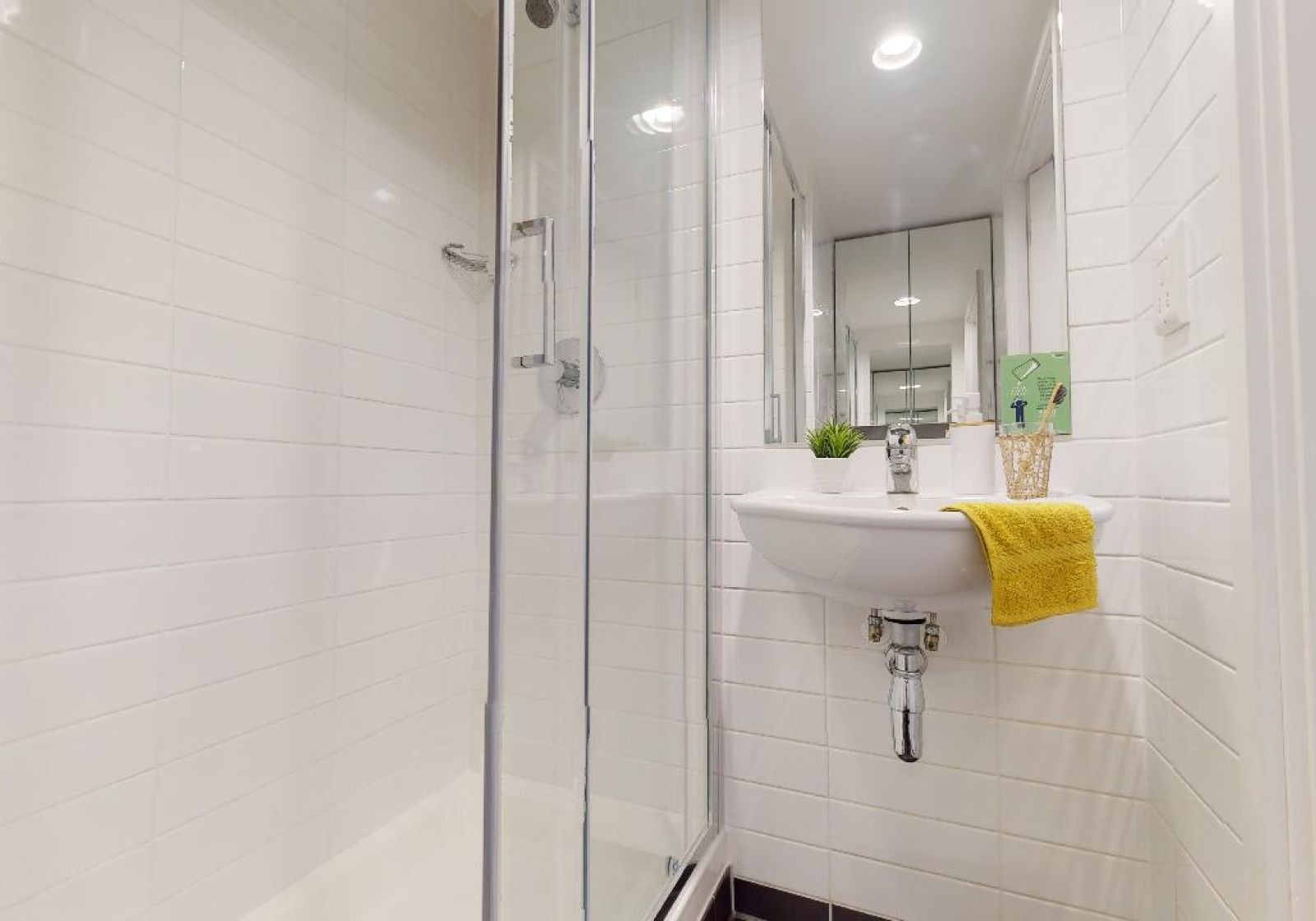 HAMM300-031125Recently refurbished studios on floors 1-4 are spacious enough with a 17-19 sq m floor plan and everything you need for a great life as a student. These rooms feature slick contemporary design, small double bed, wardrobe, study area, seating and dining area and an en suite shower room. With private kitchenette and underfloor heating included, it’s carefully designed to make best use of the space. You also get use of the building’s cinema, gym, stylish social spaces and huge courtyard.