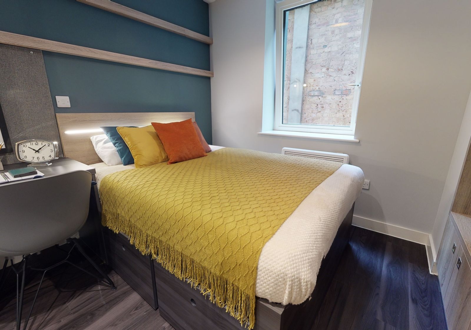 HAMM300-031125Overlooking the courtyard on floors 1-5, these studios offer 17 sqm of living space and feature a double bed, study space and a kitchen and shower room. The Bronze Courtyard Studio Plus offers all the facilities you need in one of our building’s most peaceful locations. With a 17 sq m floor plan, and its own kitchen and shower room, it provides independent living in a good-sized space. You will also have access to all of our onsite facilities, including a free-to-use gym, cinema, fitness studio, private dining room and study lounges.