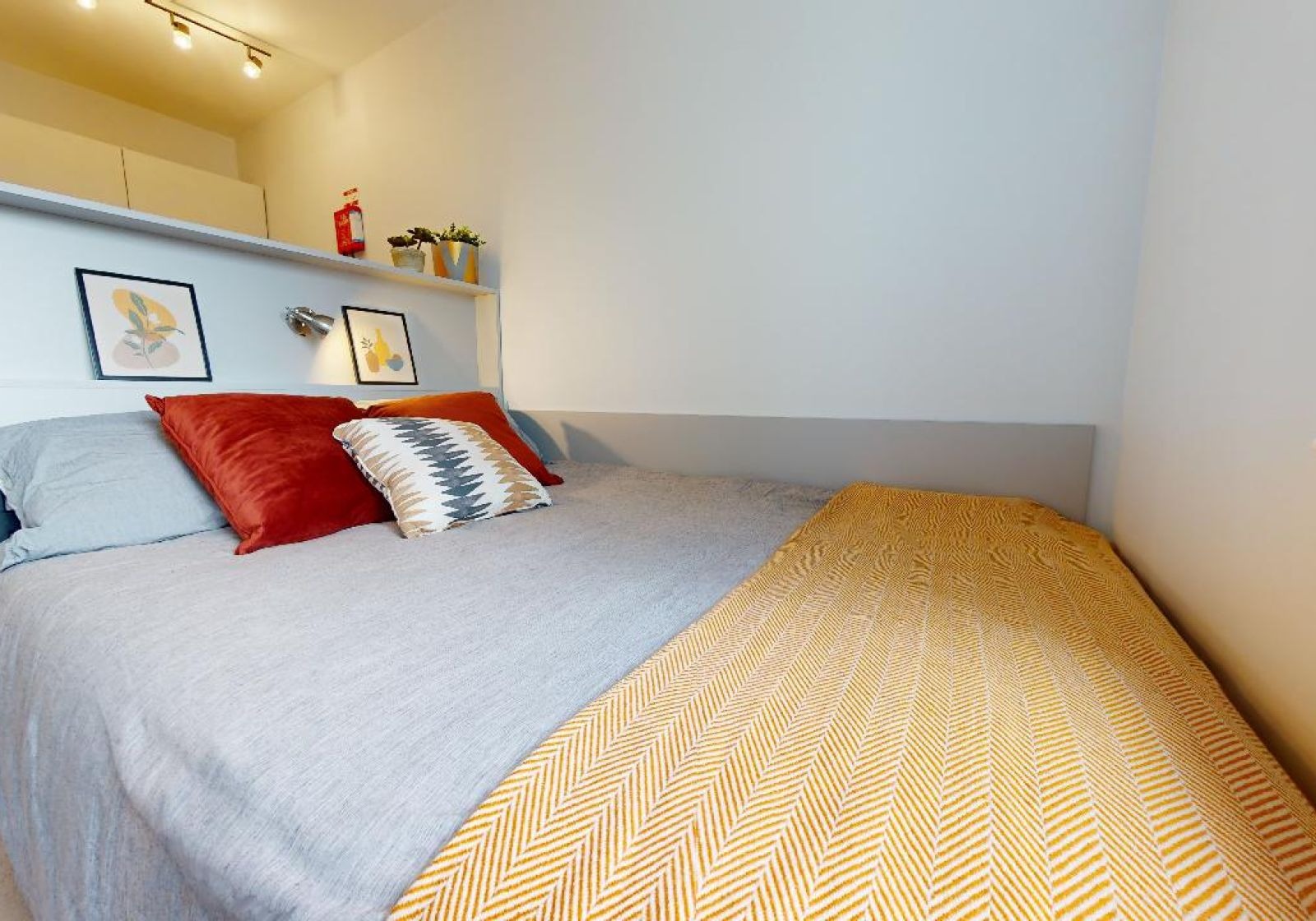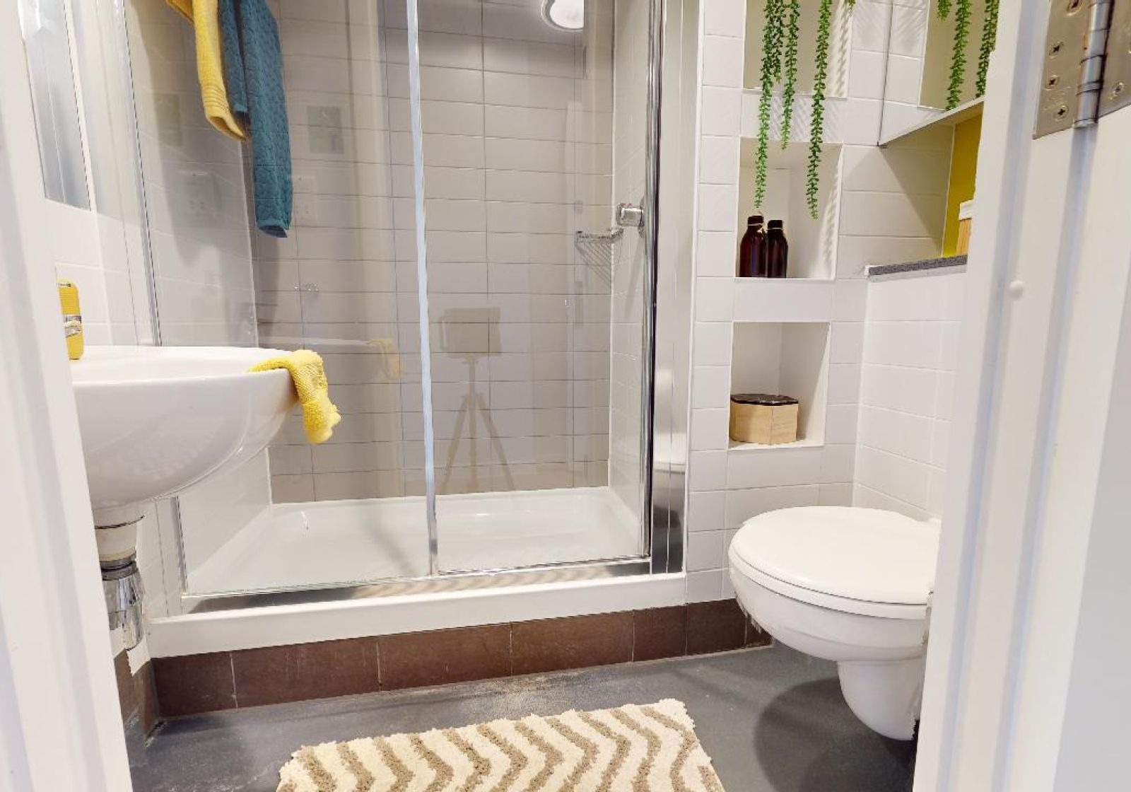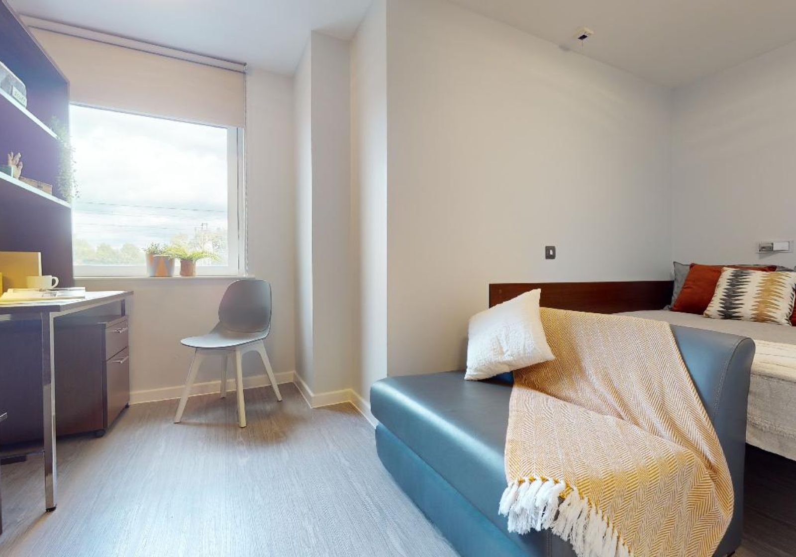 HIGH350-031125Located on floors 1-5, these en suite rooms offer a small double bed, study area, storage and underfloor heating, as well as a recently refurbished private shower room. Your shared kitchen and living area has also been upgraded with new appliances and a TV, and is cleaned each week for free. All our onsite features including a cinema room, lounge and courtyard are waiting for you too. With a generous 16-17 sq m of living space, these fully redecorated rooms offer all the essential features.