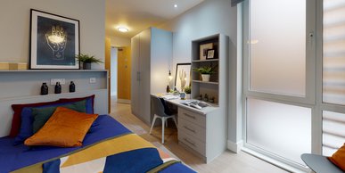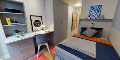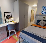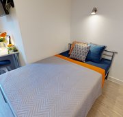 MAGE200-031125Our Silver En Suite has all the essentials you need for student living and the choice of ground to fifth floor location. At a spacious 15 sq m, this room includes a small double bed, study area and storage, as well as a brand new en suite shower room. The shared kitchen and living area comes equipped with TV, seating and all the essential appliances.