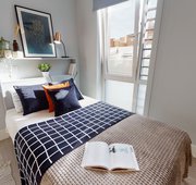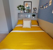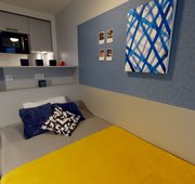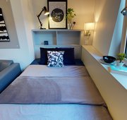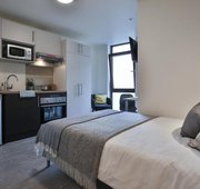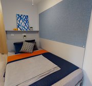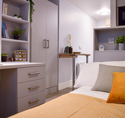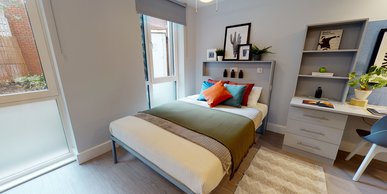 MAGE200-031125Located on the ground to fifth floor, these 13 sq m rooms have a fresh look and feel, and provide all you need in a convenient location. Your room comes with a small double bed, study area and storage, as well as an en suite shower room. You’ll share a spacious kitchen and living area with your flatmates, complete with TV and seating. Our social spaces offer more room to relax, while our well-equipped onsite gym is free to use whenever you need it.