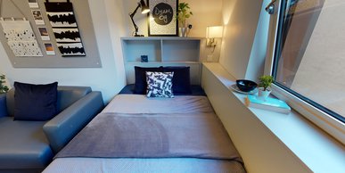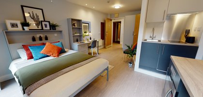 MAGE200-031125With all the features of our Bronze Studios and a little extra room, the Bronze Studio Plus gives you all you need for an independent lifestyle. These smartly laid-out studios fit a lot in, including a small double bed, study area, en suite shower room and plenty of storage.