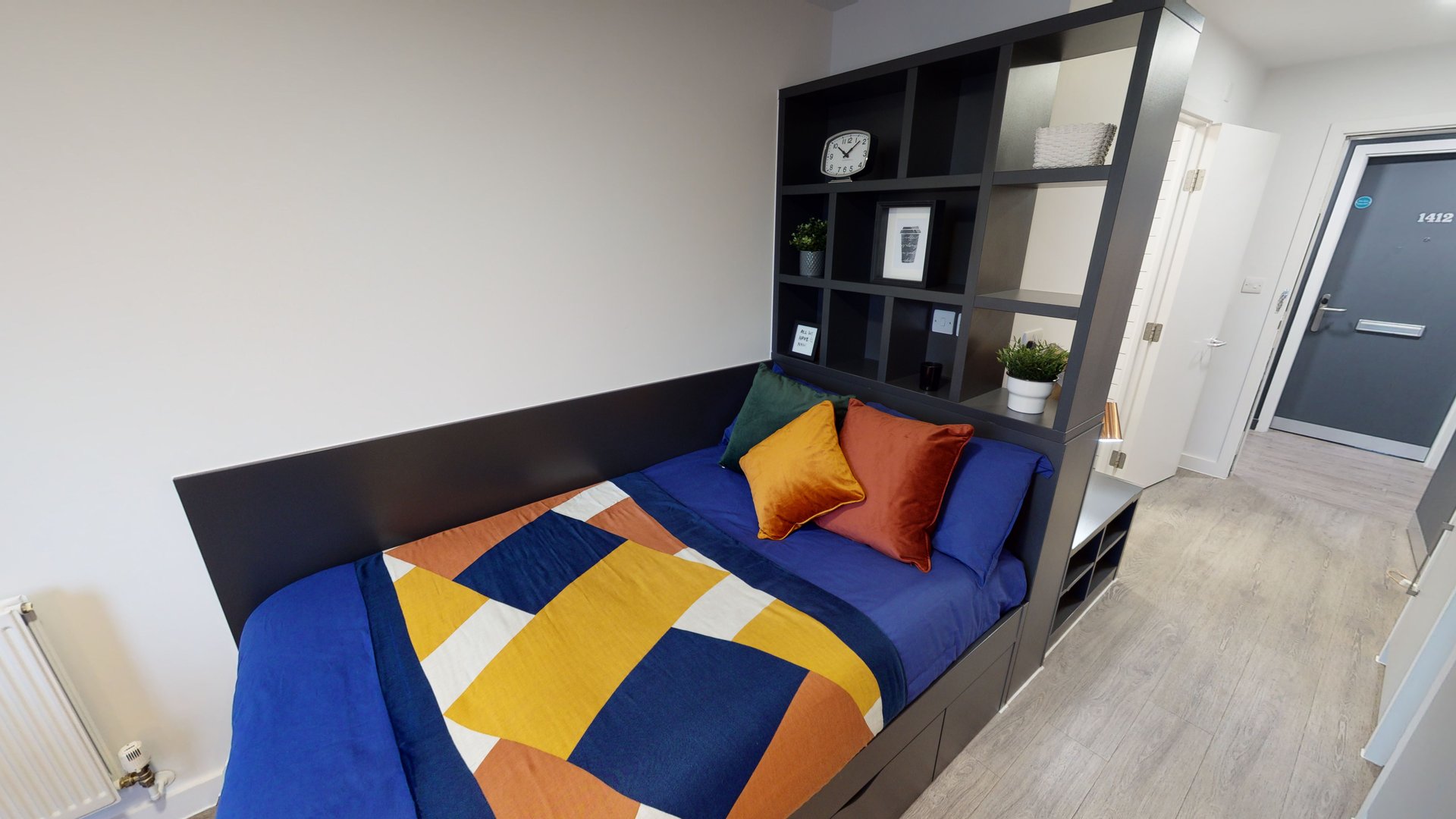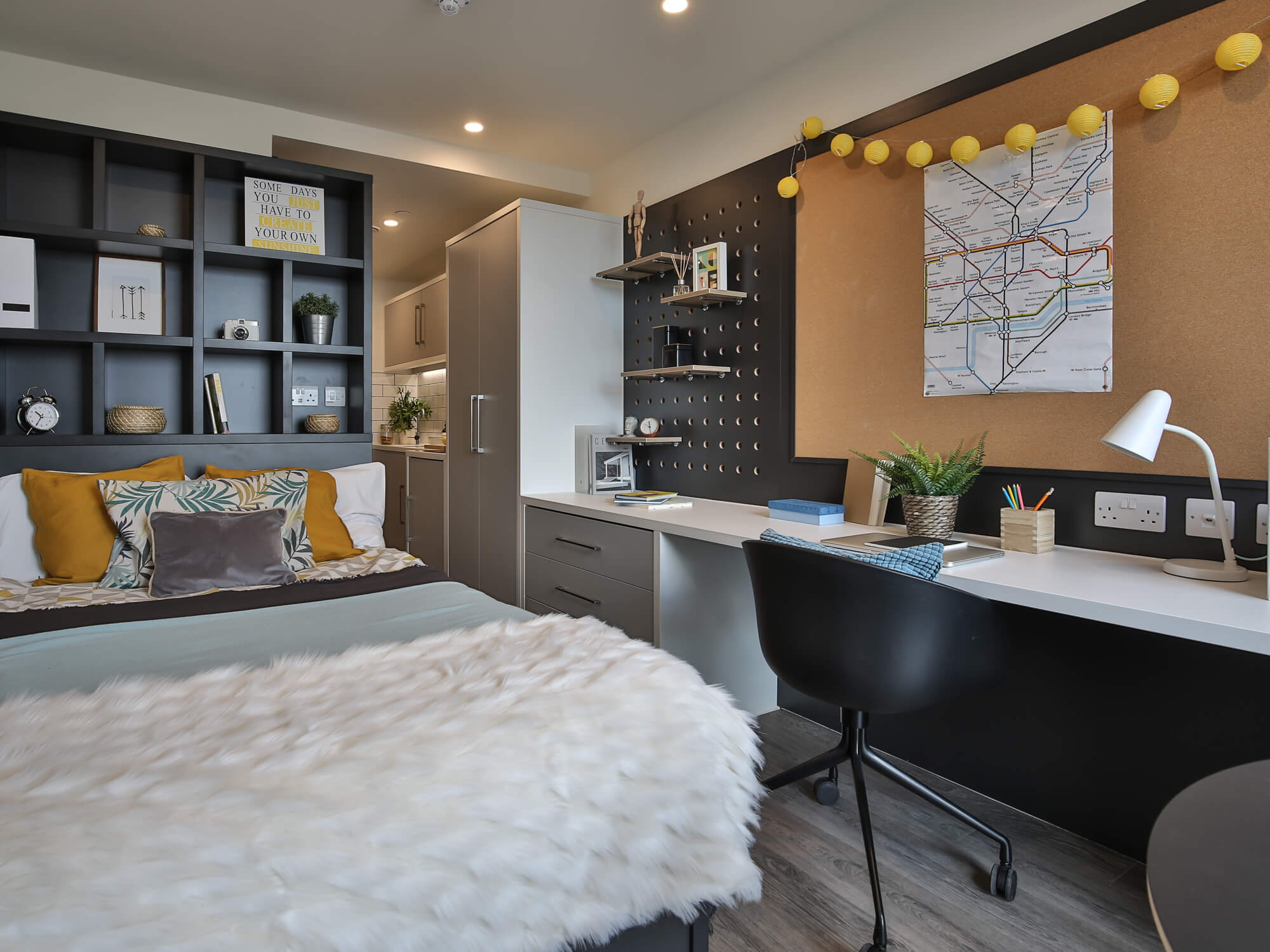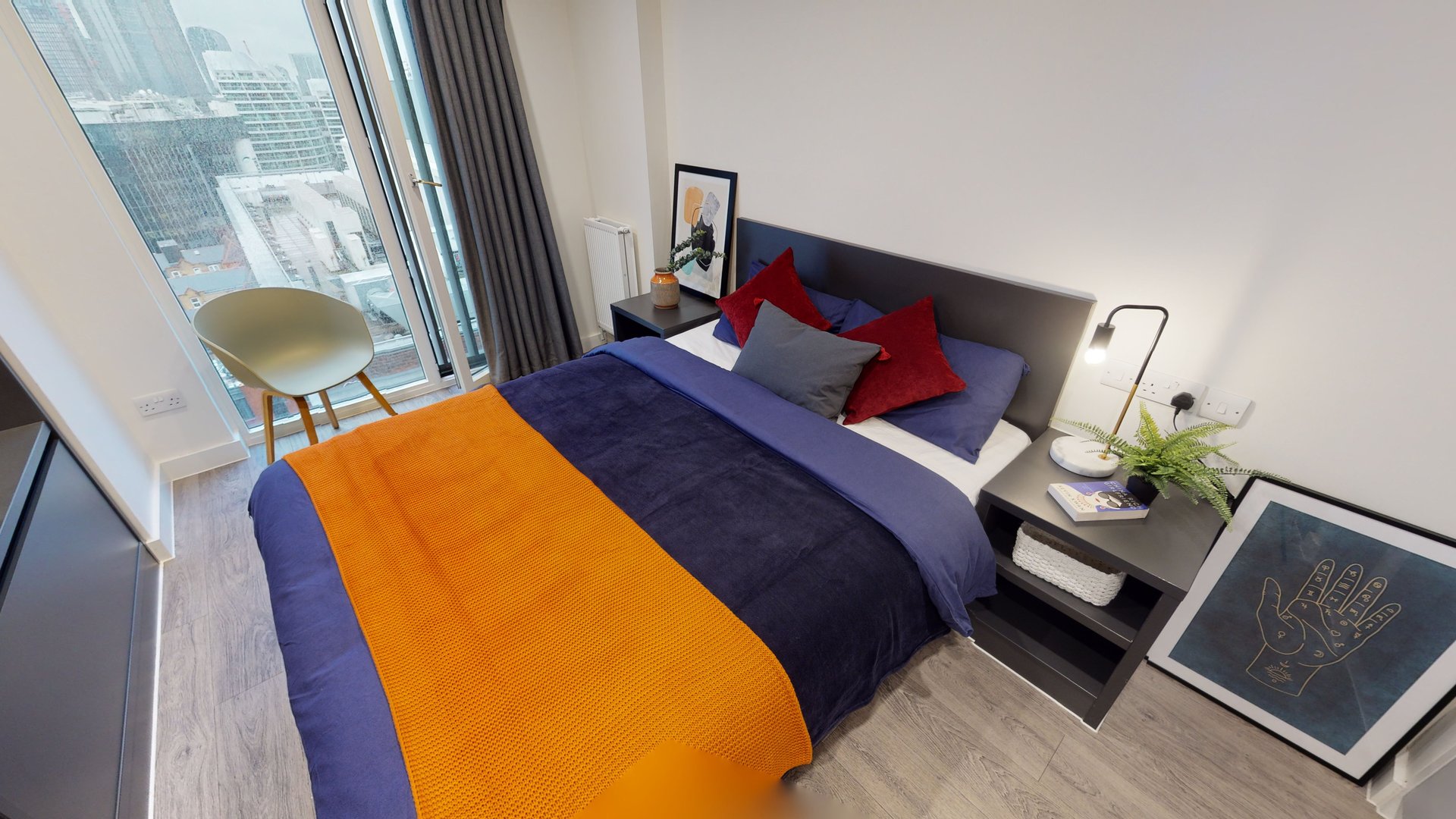 SHOR400-031125In the Two Bed Apartment Plus, you will have your own modern bedroom with a small double bed and study space, whilst sharing a bathroom, well-equipped kitchen area, a comfy seating area and breakfast bar. Take a look further down the page to see more of the Two Bed Apartment great features. Located on floors 7-9, enjoy city views with a friend or relative in your own 9-11 sq m well-formed room, sharing the kitchen and bathroom.