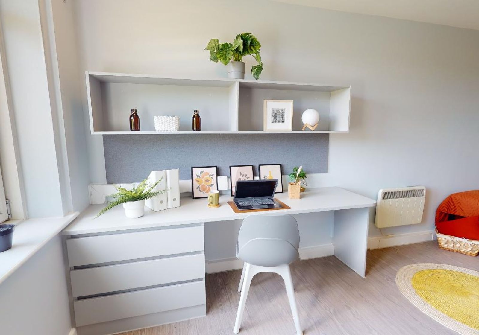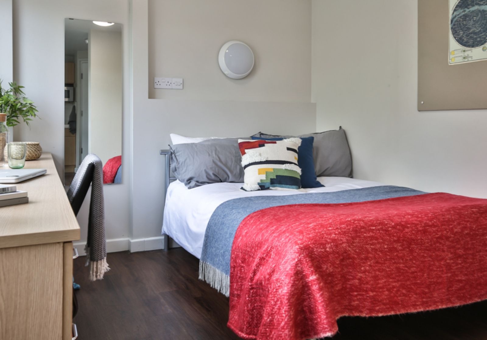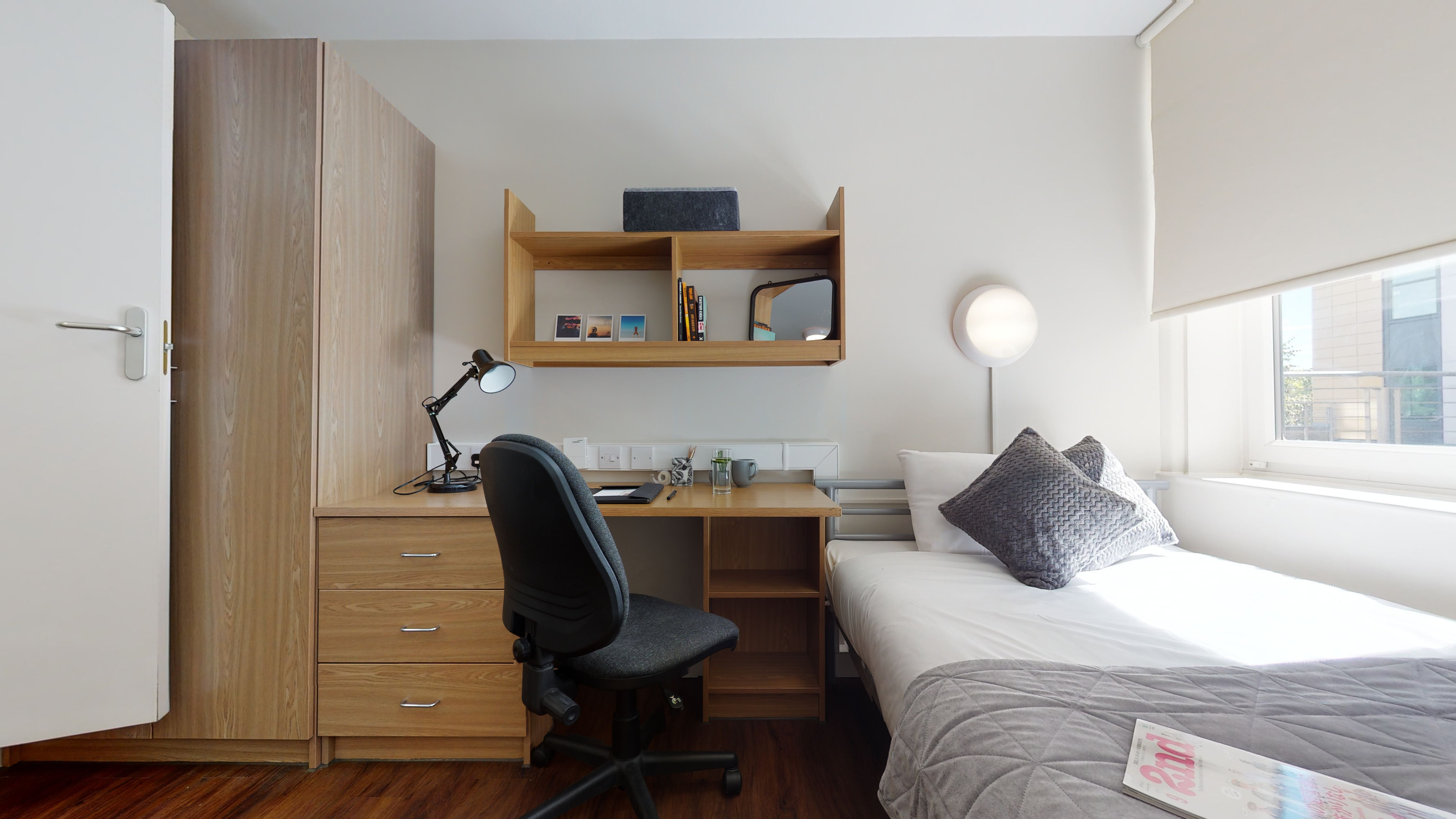 TUFN350-031125With hardwood floors, stylish design and a study desk and chair, your room is well-equipped. You’ll also have use of a shared kitchen and living space with a sofa, giving you the benefits of co-living too. Building perks include an onsite gym, a barbecue area and regular social events. Our stylish entry-level rooms in Tufnell House are great value, giving you a private bathroom, small double bed and lots of storage all within 11 sq m.