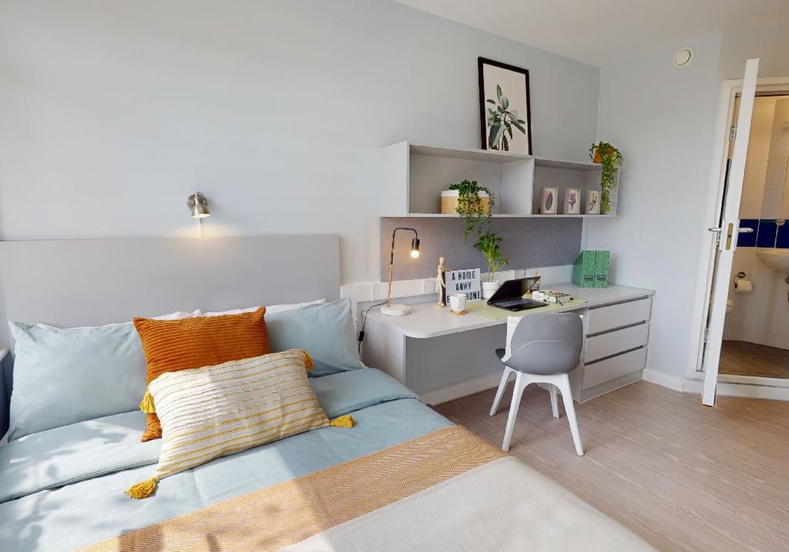TUFN350-031125With hardwood floors, stylish design and a study desk and chair, your room is finished to a high standard. You’ll also have use of a shared kitchen and living space with a sofa, giving you the benefits of co-living too. Building perks include an onsite gym, a barbecue area and regular social events. Enjoy 13 sq m of room to breathe for just a little extra cost in these en suites with your own private bathroom, small double bed and lots of storage.