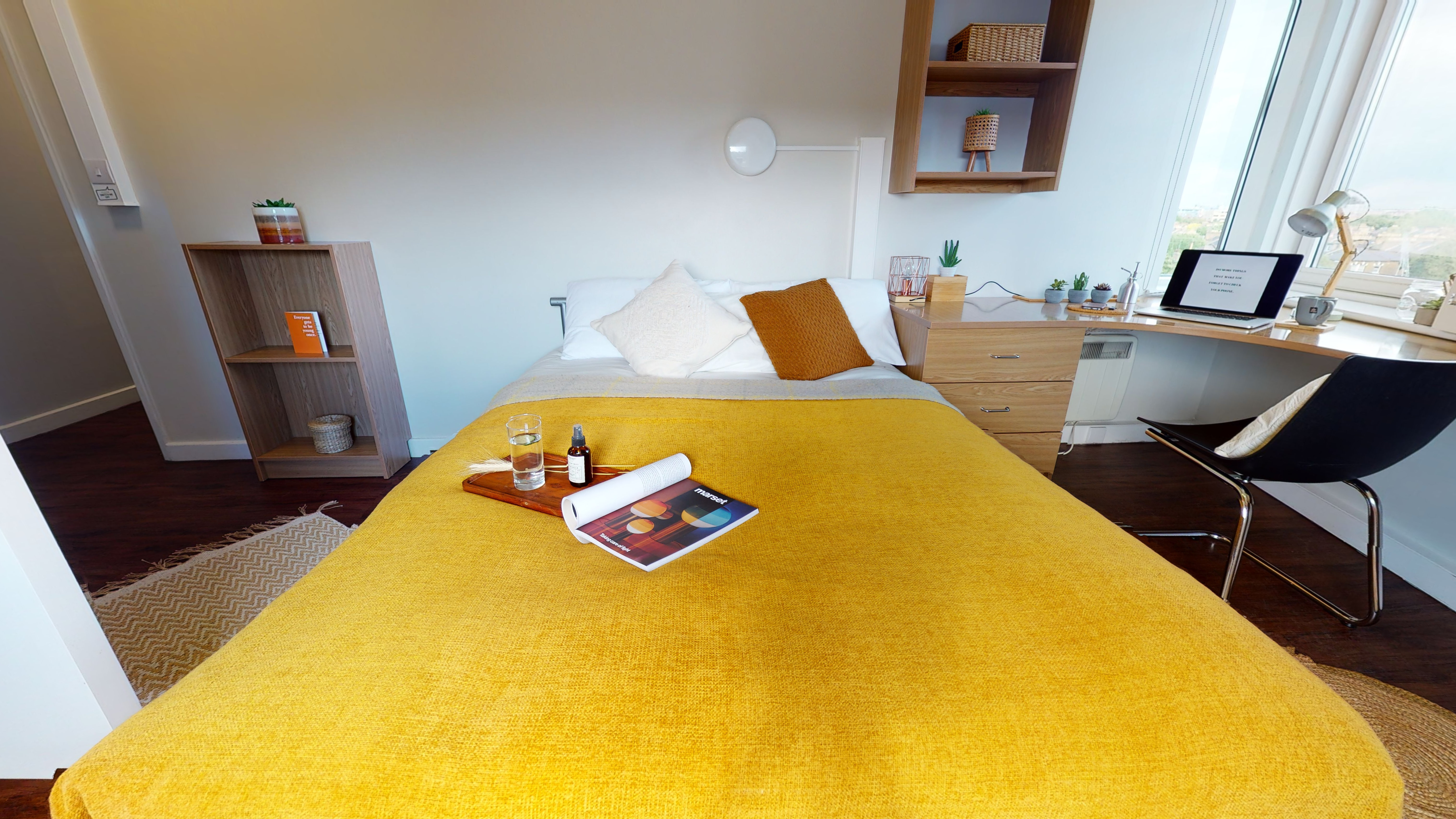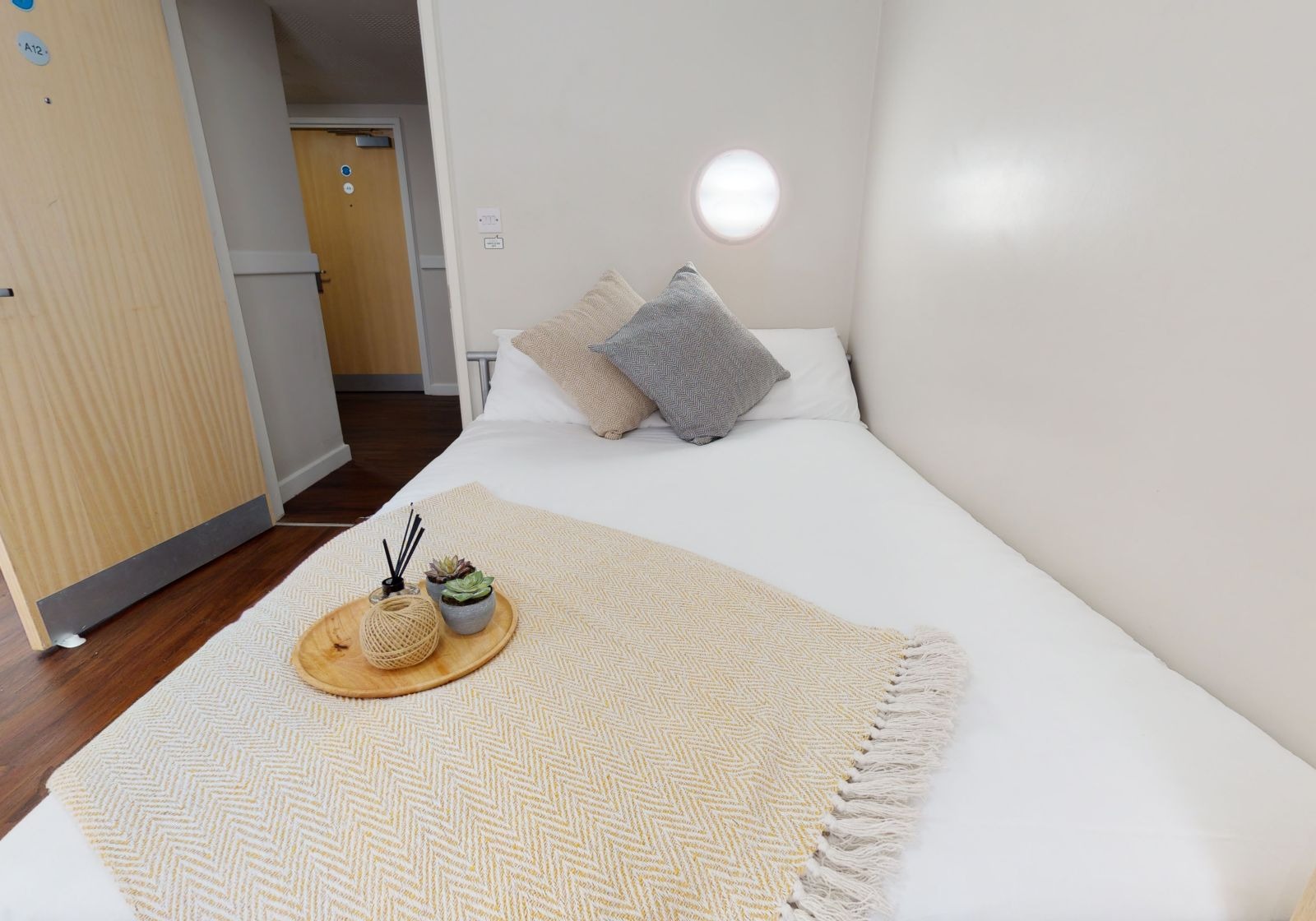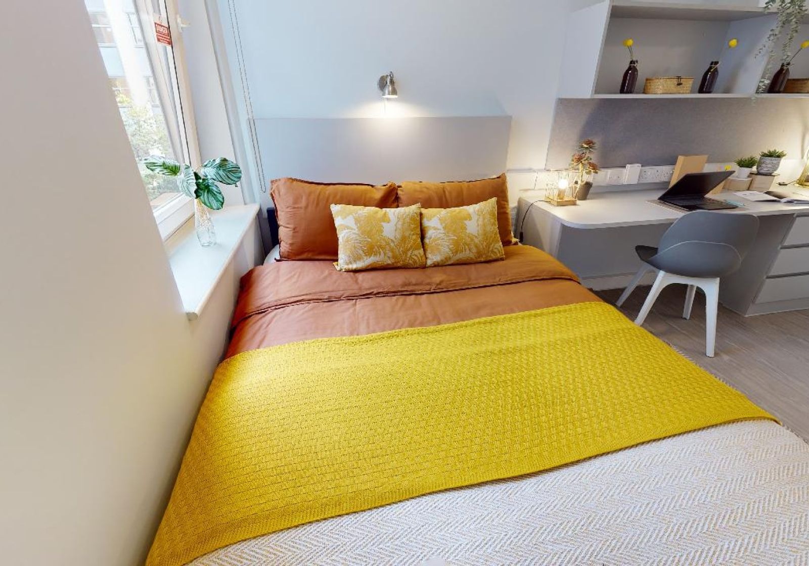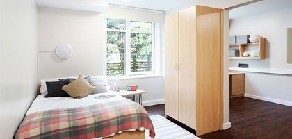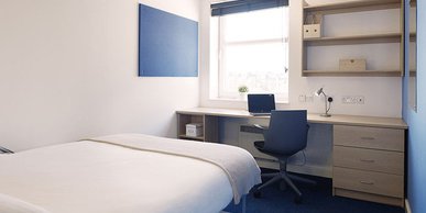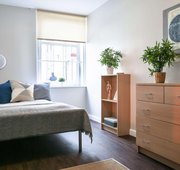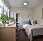 TUFN350-031125Our stylish entry-level rooms in Tufnell House are great value, giving you a private bathroom, small double bed and lots of storage all within 11 sq m.