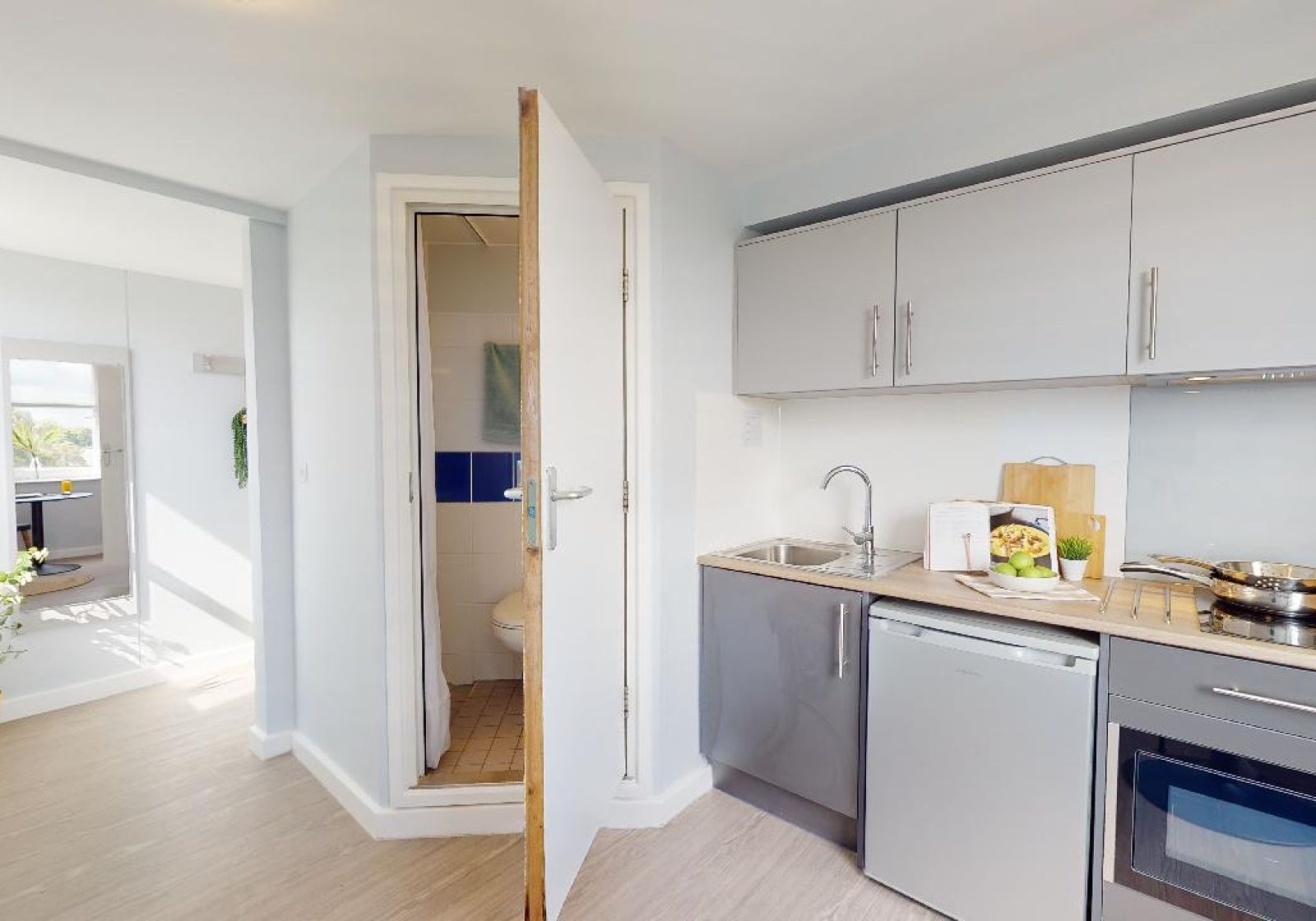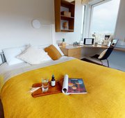 TUFN350-031125These luxury, self-contained flats are perfect for couples sharing or anyone wanting the maximum of 30 sq m in space, style and privacy. Finished to the highest standard with contemporary design and fittings, these spacious flats have a separate kitchen, bedroom with living area and bathroom. With plenty of space, hardwood floors, study area and full-size double bed, it’s brilliantly equipped. Building perks like the onsite gym and barbecue area are also included.