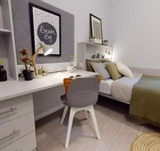 WILL200-031125Private room Single bed Private bathroom TV in shared kitchen/living space In a flat with up to five other rooms, our Gold En Suite rooms are found on all floors and feature large windows, a bed, study area and en suite shower. Each shares a kitchen with the other rooms.