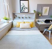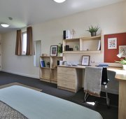 Private room Single bed Fully accessible Private bathroom With wheelchair access, this room is twice the size of our standard Gold En Suite and located on the ground floor of the building. You have an accessible shower, single bed and study area, and the use of a shared kitchen and living space.