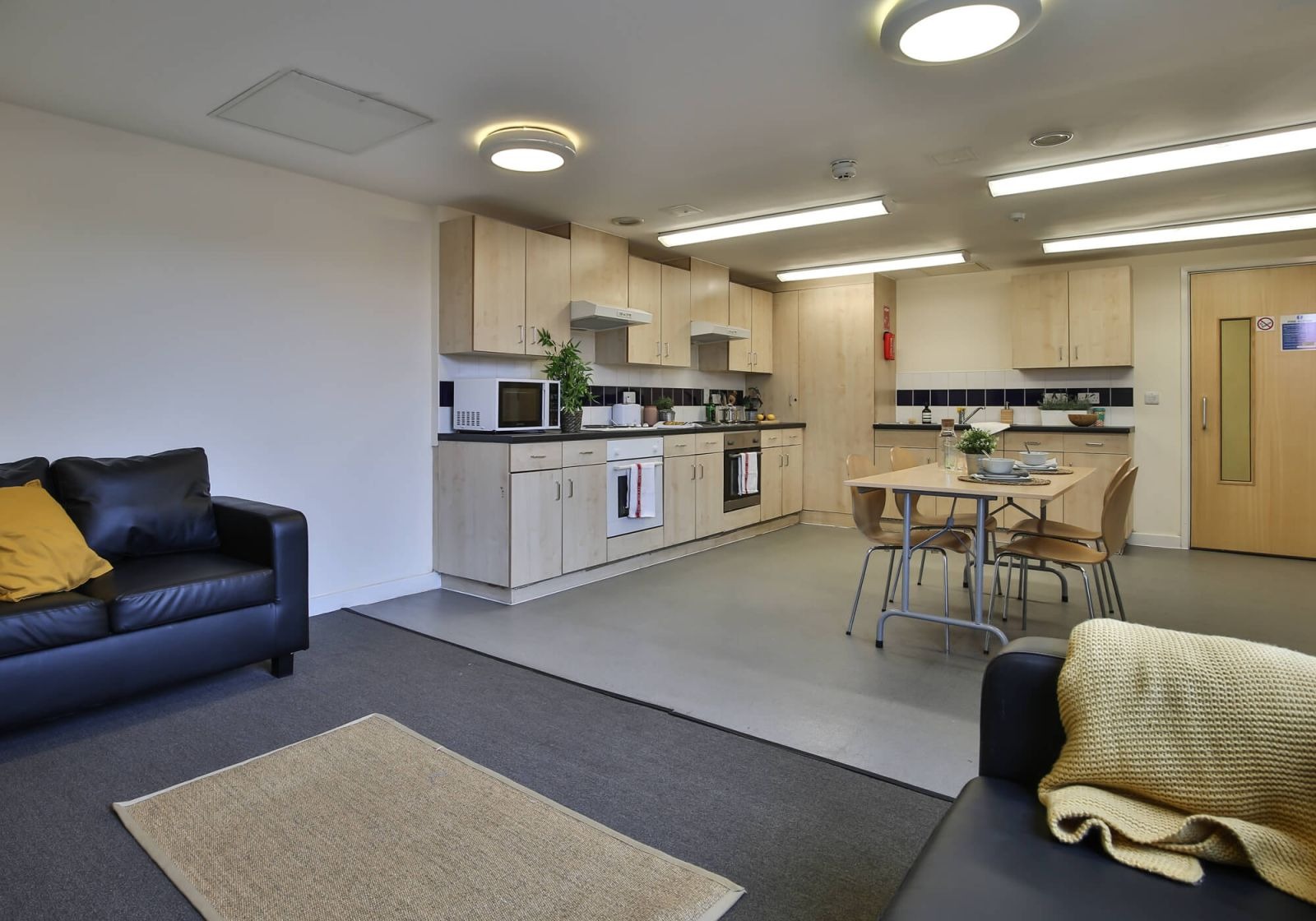 WILL200-031125In a flat with up to six other rooms, our Gold En Suite Plus rooms are found on on a higher floor and feature a bed, study area and en suite shower. Each shares a kitchen with the other rooms.