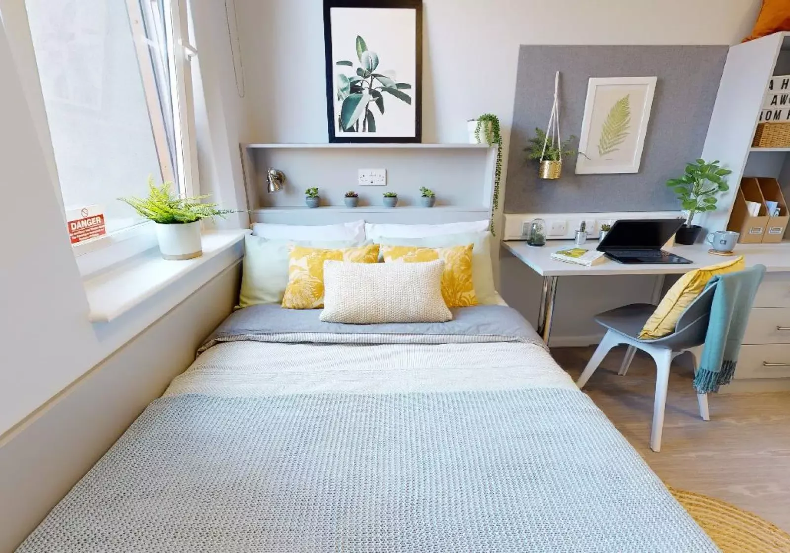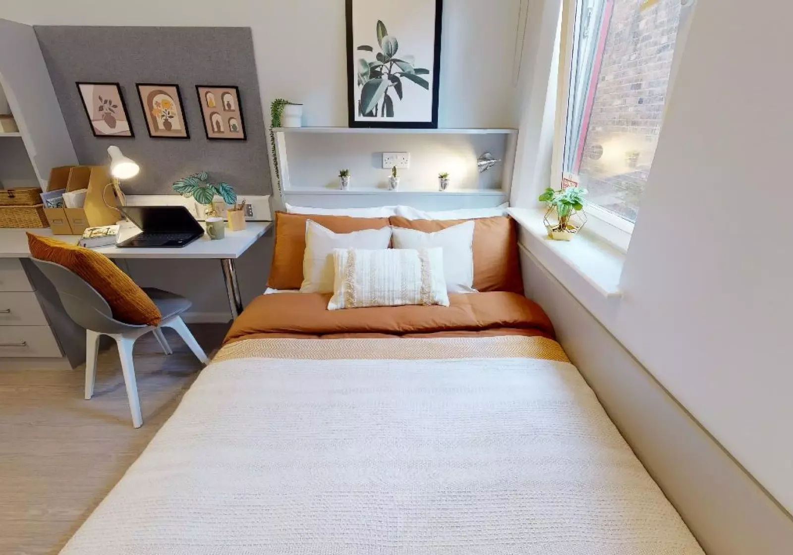 WILL200-031125Located on a higher floor, our Silver En Suite Plus gives you a great mix of independence with your own room, views of the city and sociability with seven or eight flatmates. As well as having your own private shower room, bed and study area, you will share a kitchen and living space with TV with your flatmates.
