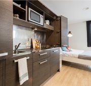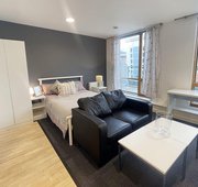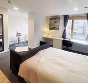 Premium 4 Studio apartments are our largest and are perfect if you prefer to live independently and study in private. Premium range 4 studios measure approximately 38 SQM and are located on floors on the 5th floor with west facing views. All rooms are large and open, and have a double bed, their own bathroom and fully fitted kitchen/dining area.