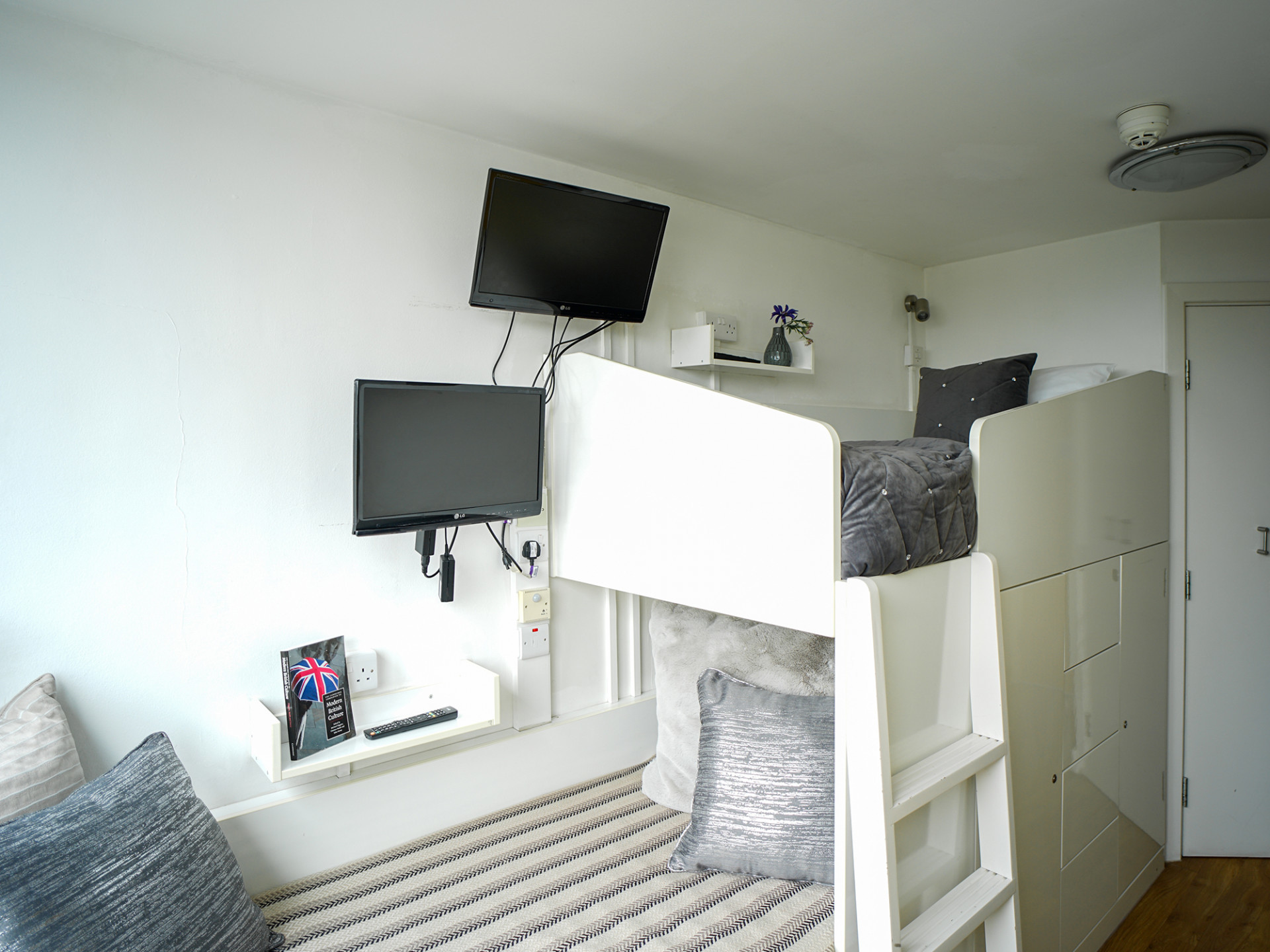 Our Twin Ensuite bedroom measures around 12.5 m², with two comfy single beds and two wardrobes for all your bits and bobs. With two fitted study desks and chairs, you can crack on with your studying in peace.