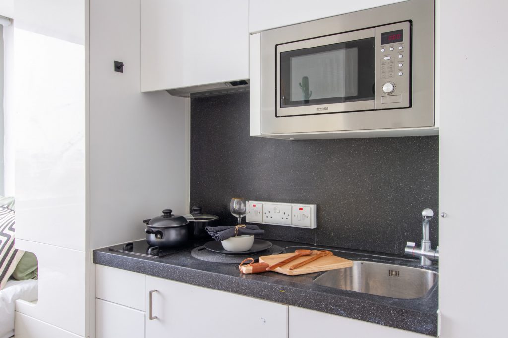 Our self-contained Sapphire View Studio is located on a higher floor with big airy windows. Measuring around 13m², your studio comes with a comfy ¾ bed, perfect to snuggle into after a long day at uni. With an en suite bathroom, a fully equipped kitchenette, a handy study area and a wardrobe, you’ll feel right at home in no time.