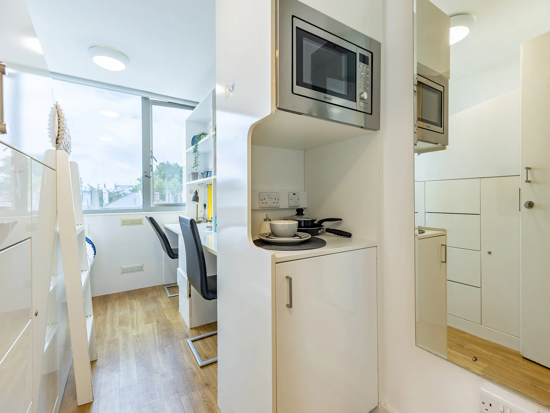 For those who need a little more space, our Platinum Studio has plenty of room for all your belongings! With a big wardrobe for all your clothes and a handy study area, make the most of this airy, spacious student accommodation.