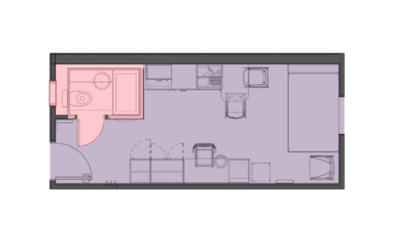 Self-contained student living starts here. Enjoy a 26sqm studio, boasting a modern mini-kitchen, queen size bed, with bags of storage space and a study area.