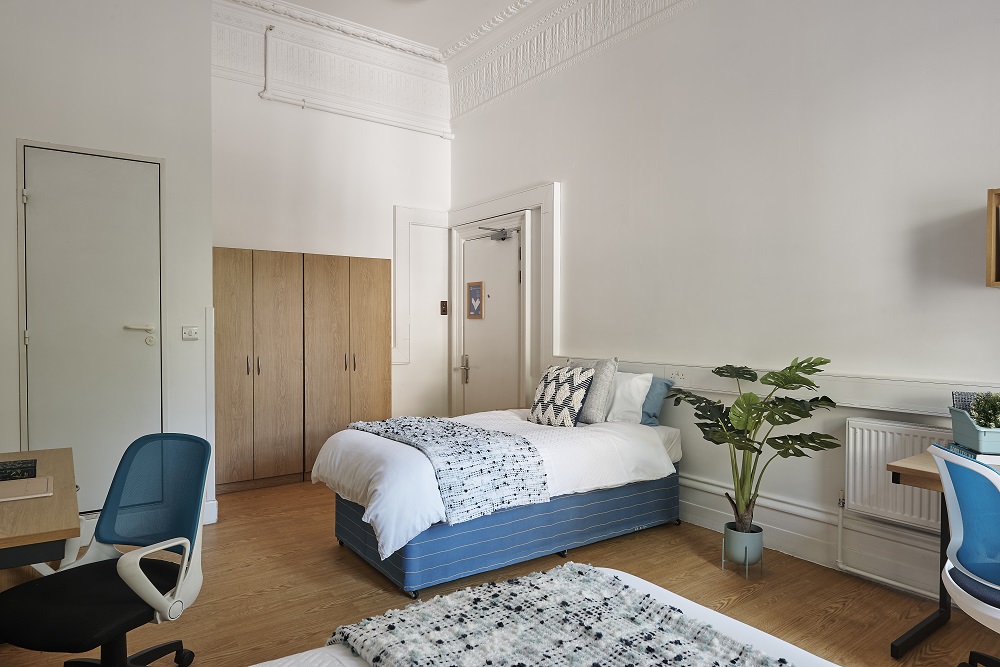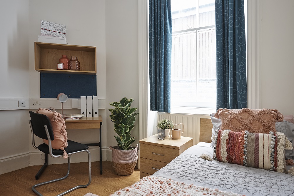 Room sizes vary between 16m and 22m - Shared en-suite bathroom with shower and WC - Two single beds - Two bedside three drawer cabinets - Two wardrobes - Two study desks and chairs - Lamp - Under bed storage - Whats in the kitchen? - Two hobs - Two ovens - Two extractor fans - Two sinks - Microwave - Two refrigeration units - Kettle - Toaster - breakfast bar/table and stools - Plenty of cupboard/storage space - mop/bucket and broom - Modern dcor