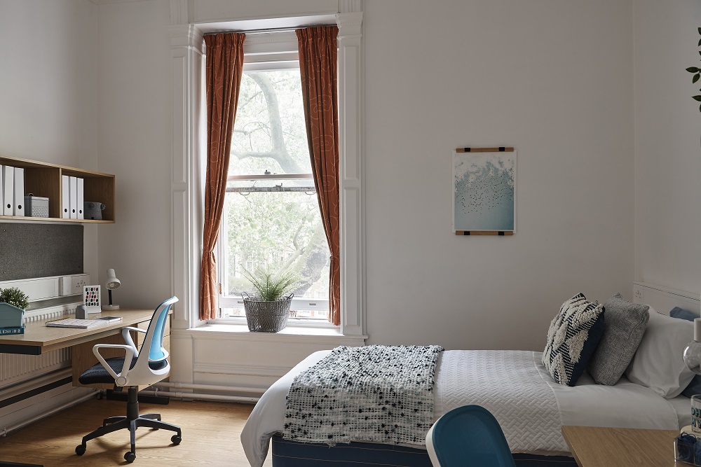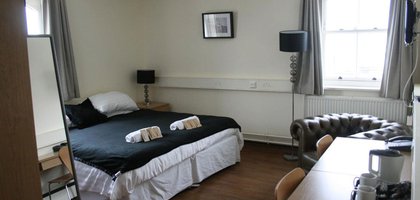 En-suite bathroom with shower and WC - King size bed - Bedside table - Wardrobe - Study desk and chair - Lamp - Plenty of storage - Fridge Freezer - Electric oven - Integrated 4 ring hob - Extractor hood - Microwave - Sink - Drainer tap - Bin - mop/bucket and broom