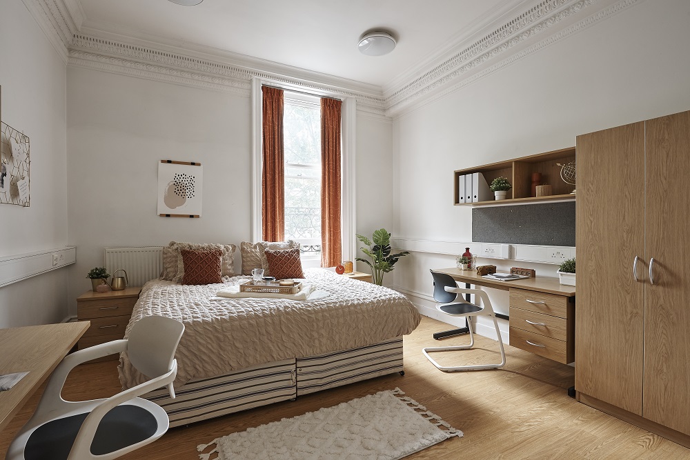 Room sizes vary from 16m to 17.5m - En-suite bathroom with shower - King Size Bed - Bedside table - Wardrobe - Study desk and chair - Lamp - Plenty of storage This comes with a shared kitchen and includes Storage cupboard - Fridge Freezer - Electric oven - Integrated 4 ring hob - Extractor hood - Microwave Toaster - Kettle - Breakfast bar/table and stools - Sink - Drainer tap - Bin - mop/bucket and broom