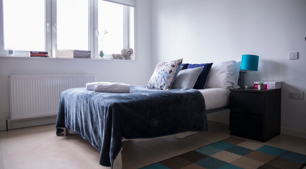 Want to live with that special pal? Our super spacious 2-bedroom studio apartment is perfect for just that! Chill out in our studio apartment rooms measuring 16m² with two comfy ¾ beds, perfect to sink into after a long day at uni. Want to impress your pal with your culinary skills? Get cooking in your very own kitchenette! When it’s time to focus, crack on in your study area and chill out with your 100Mbps WIFI afterwards. With a handy wardrobe you won’t be short of space, you even get the comfort of your own shared en suite bathroom.