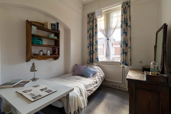 As this is a Grade II listed building, the rooms come in different shapes and sizes but is up to 9.4m2, has high ceilings and large windows which brings in lots of natural light. Rooms come with a single bed, bedside table, wardrobe, chest of drawers, a bookcase, mirror plus a desk and chair.