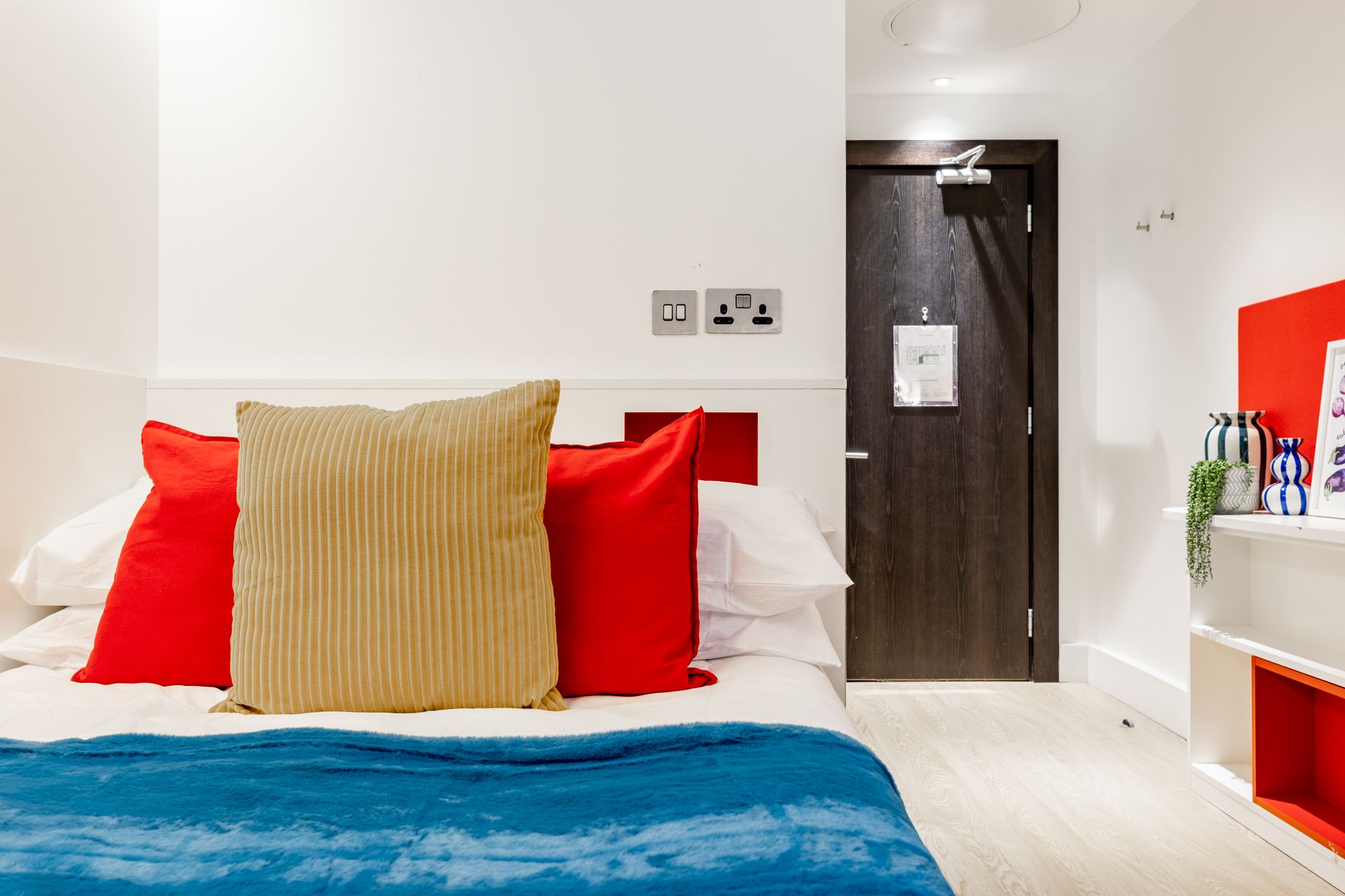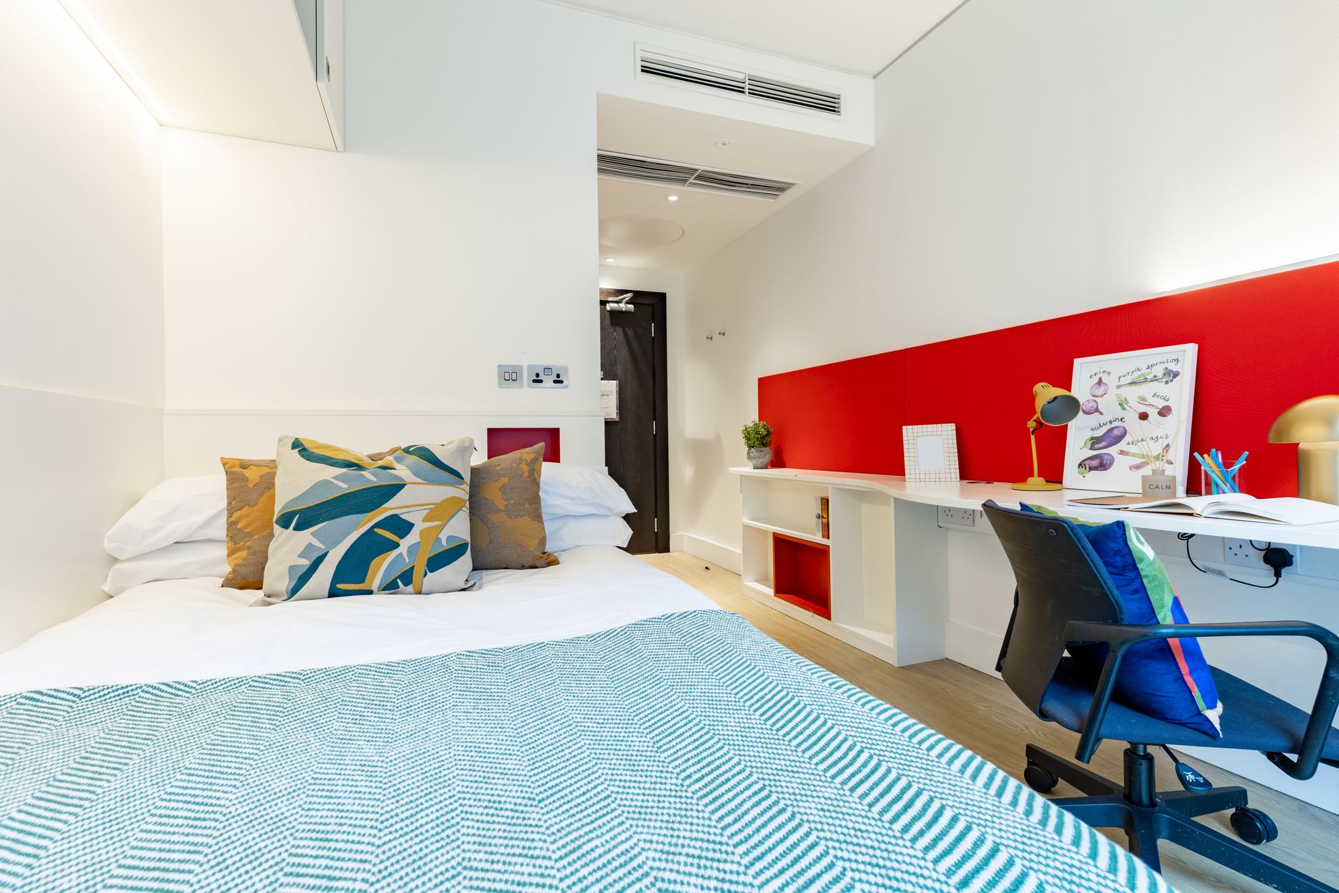 All the comfort of our Bronze Studio, with a little extra space to make it yours. Small double bed, en suite, kitchen, storage, and study area – all wrapped up in a stylish, self-contained design. Room size: 18 – 25 sqm. Council Tax Band B or E.