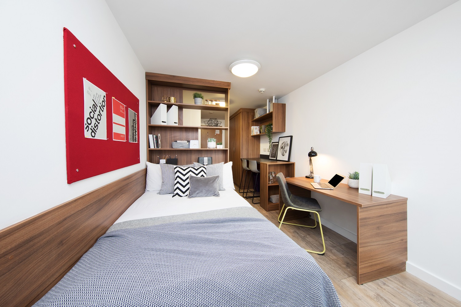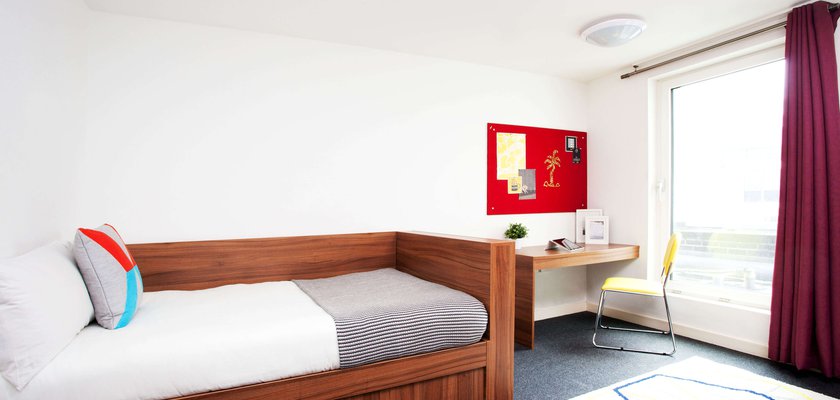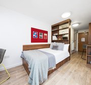 Student Living Heights Unite is a London student accommodation providing students with affordable housing in close proximity to their respective universities, colleges, and higher education institutions. Student Living Heights Unite mainly has a wide variety of studios and accessible studios for students to pick and choose from. All units are fully furnished and self-contained and come fitted with the following: a double bed with under-bed storage, a wardrobe, curtains, a study area with a desk and a chair, and a private en-suite bathroom with a shower. Studios come with a private kitchen equipped with cooking hobs, a fridge freezer, an oven, a microwave, a noticeboard, and stools.