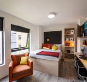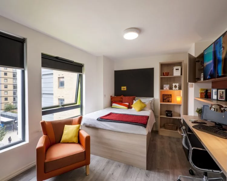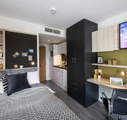 Room Size : 20.5m² The silver studio offers plenty of study and living space, as well as ample storage within the stylish fitted furniture.