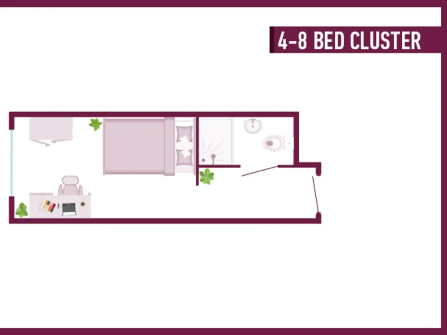 Room sizes range from 13.9m² to 14.5m² 2 ring hob Dual function electric and microwave oven Integrated fridge with freezer compartment Private ensuite bathroom with shower and WC 3/4 double bed with under bed storage Double action black out blind Double wardrobe Full length mirror Study desk and chair with drawer space USB Ports Bookshelf storage Coat hooks Integrated bedside lamp Pinboard / message board Unique in-room personal WiFi