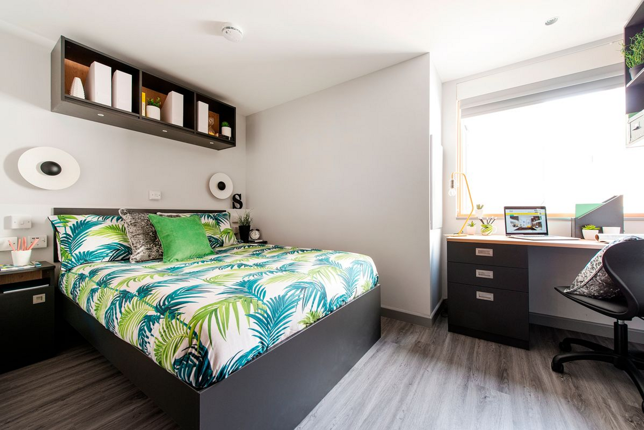If you like to keep things just so, then a self-contained and fully furnished studio apartment would be a great choice for you. Studios come complete with a small double bed and mattress, desk and study chair, plenty of shelving and storage space, with a big wardrobe so you'll never run out of space, plus a large flatscreen monitor! The kitchen area comes with ceramic hobs, combi-microwave, an under-counter fridge. Each studio has its own modern en-suite bathroom with shower, washbasin and vanity mirror, towel rail and WC. Sizes vary between 13.5 and 14sqm.