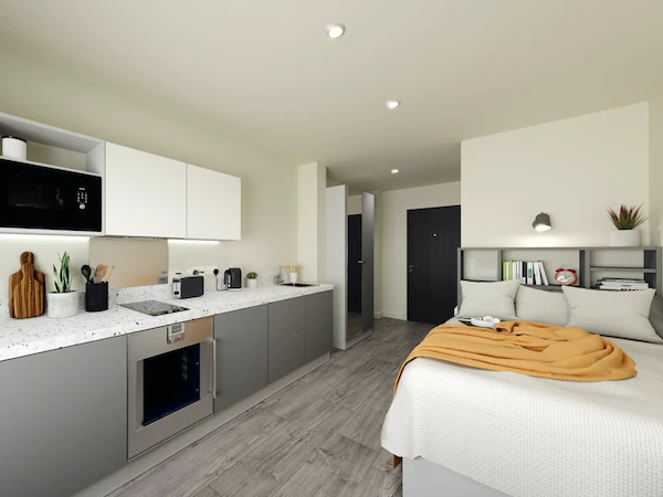 Students looking for a touch of luxury will find it in the Silver Plus Studio. With an opulent bed, a spacious desk, and a private ensuite, this studio offers a lavish living experience.