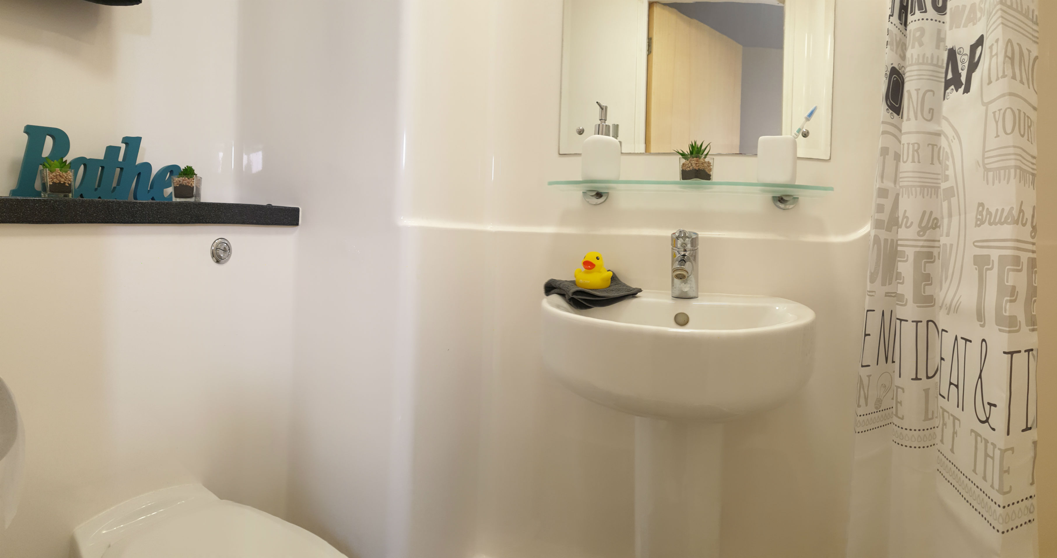 Step into comfort and functionality with our 3/4 bed Premium Ensuite rooms. Each room features a cosy bed with under-bed storage, perfect for keeping your belongings organised. Stay connected with Wi-Fi and broadband access while you study at the desk with a study chair and wall shelving for added convenience. Store your belongings safely in the spacious wardrobe and the bookcase. Stay organised with a wall pin board and make use of the mirror for those last-minute touch-ups. You can freshen up in the large en-suite bathroom equipped with a toilet, sink, and shower. Share laughs and meals in the communal kitchen with a dining area, stocked with appliances including a fridge freezer, microwave, and cooker with hob. Additional amenities include an iron, ironing board, hoover, mop and bucket, and dustpan and brush. Unwind in the shared lounge area with a 42″ TV and licence.