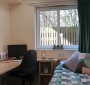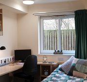 Experience comfortable living in our 3/4 Bed Standard Ensuite rooms. Each room features a bed with underbed storage for efficient space usage. Stay connected with Wi-Fi and broadband access while you study at the desk with a study chair and wall shelving. Store all your belongings in the wardrobe and bookcase provided. Pin important notes and reminders on the wall pin board, so you never have to miss a deadline! Freshen up in the en-suite bathroom with a toilet, sink, and shower. Share delicious meals in the communal kitchen with a dining area, equipped with essential appliances including a fridge freezer, microwave, and cooker with hob. Additional amenities include an iron, ironing board, hoover, mop and bucket, and dustpan and brush. Relax in the shared lounge area with a 42″ TV and licence.