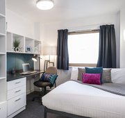 Stunning private rooms with double beds, under-bed storage, study desks, private bathrooms, and shared kitchens are available at Fitzroy Courts student accommodation. Staying at Fitzroy Courts Luton includes access to a game room, a cosy movie theatre, and a fully equipped gym. The rent includes access to the building's free high-speed WiFi network and laundry facilities to make your stay at Fitzroy Courts comfortable.