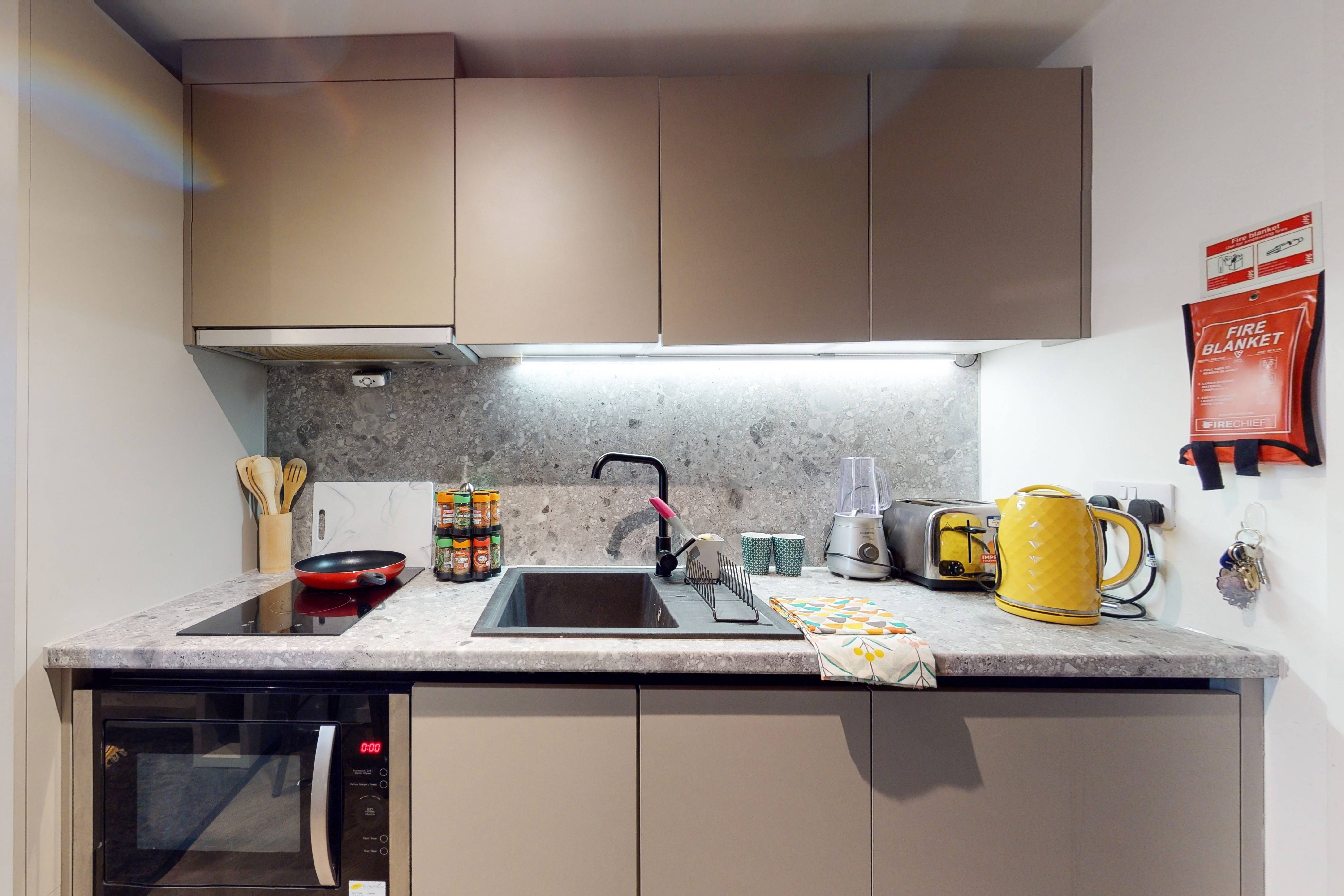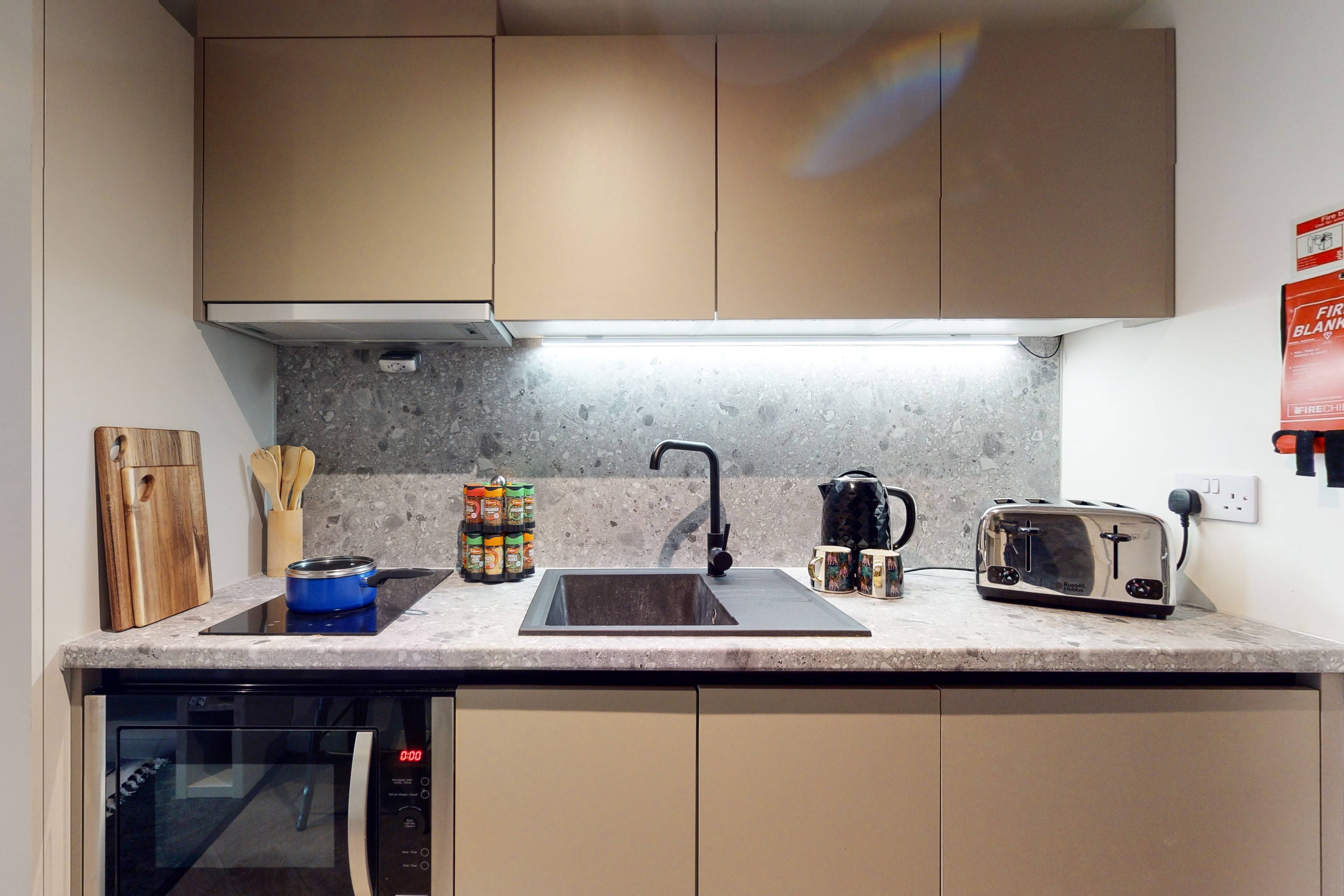 Bills included, Private room, 13 - 15.9 sqm, Study desk & chair, Wardrobe & additional storage space, Private kitchen with cooking facilities, fridge/freezer & sink, Private bathroom with shower, toilet & basin