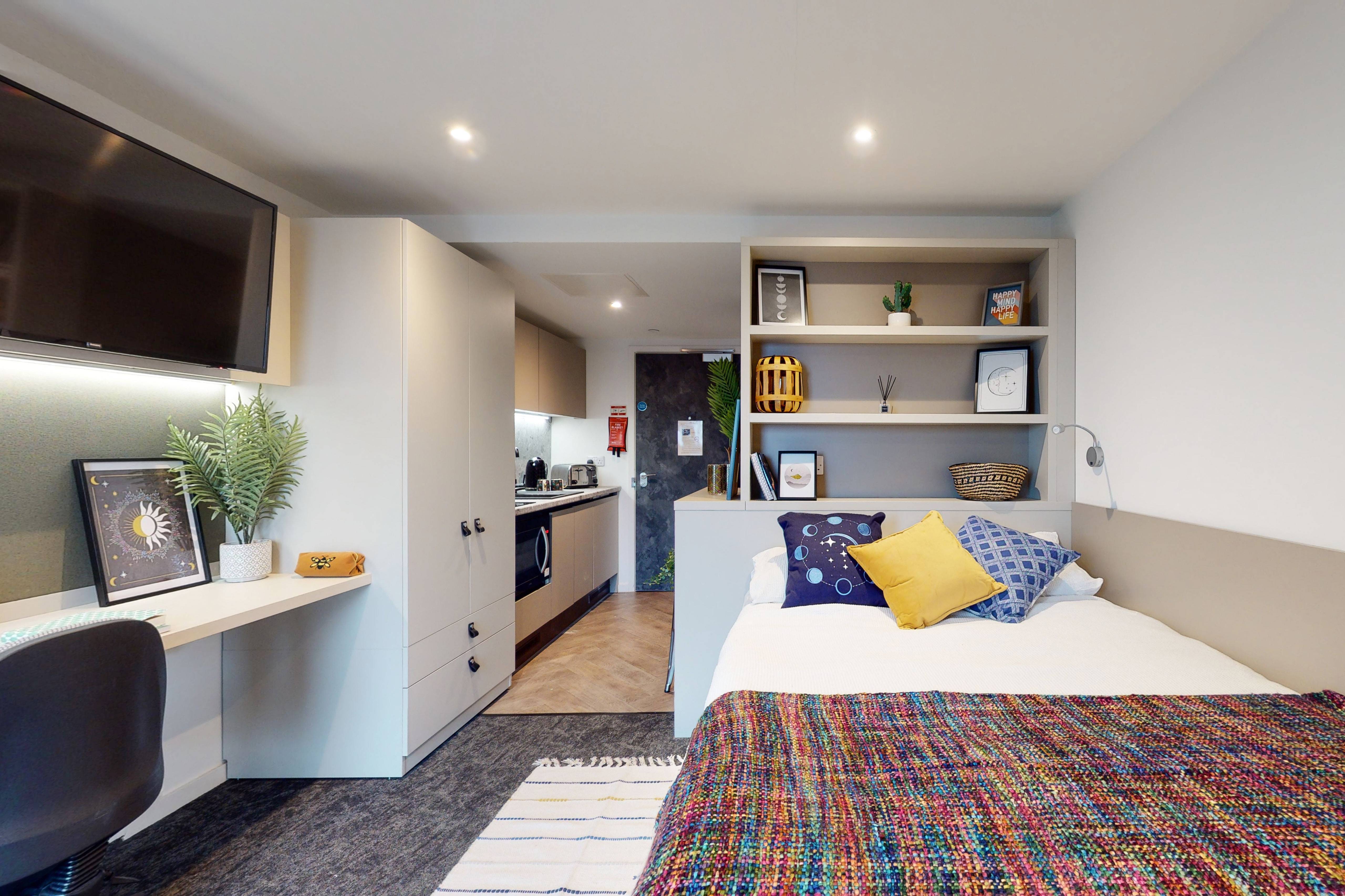 Bills included, Private room, 9 sqm, Study desk & chair, Wardrobe & additional storage space, Private kitchen with cooking facilities, fridge/freezer & sink, Private bathroom