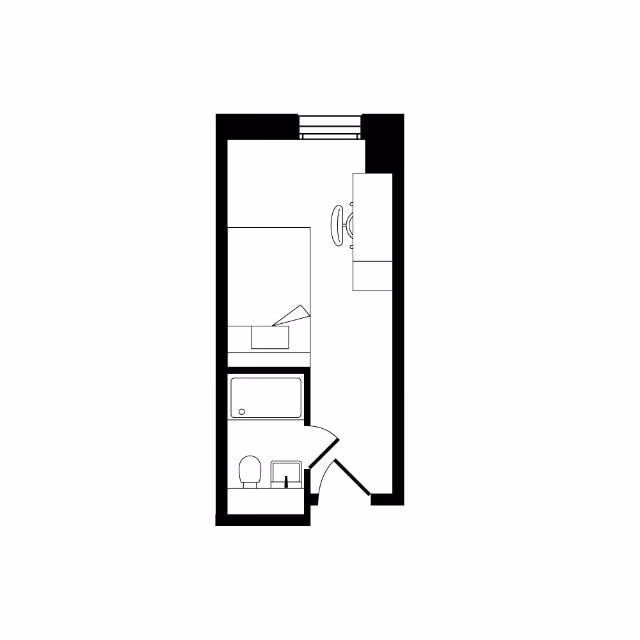Bills included, Private room, 18 sqm, Study desk & chair, Wardrobe & additional storage space, Private kitchen with cooking facilities, fridge/freezer & sink, Private bathroom with shower, toilet & basin