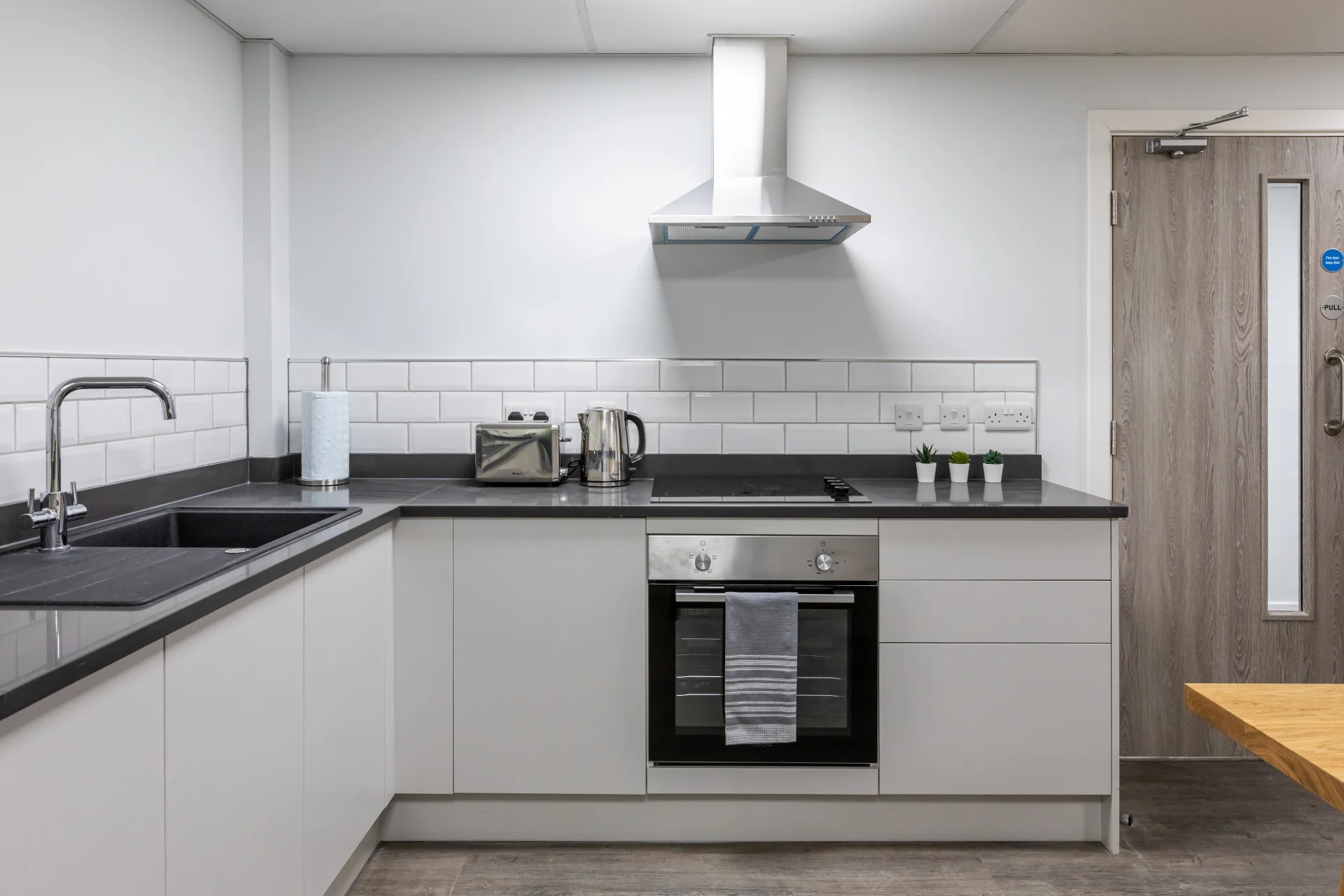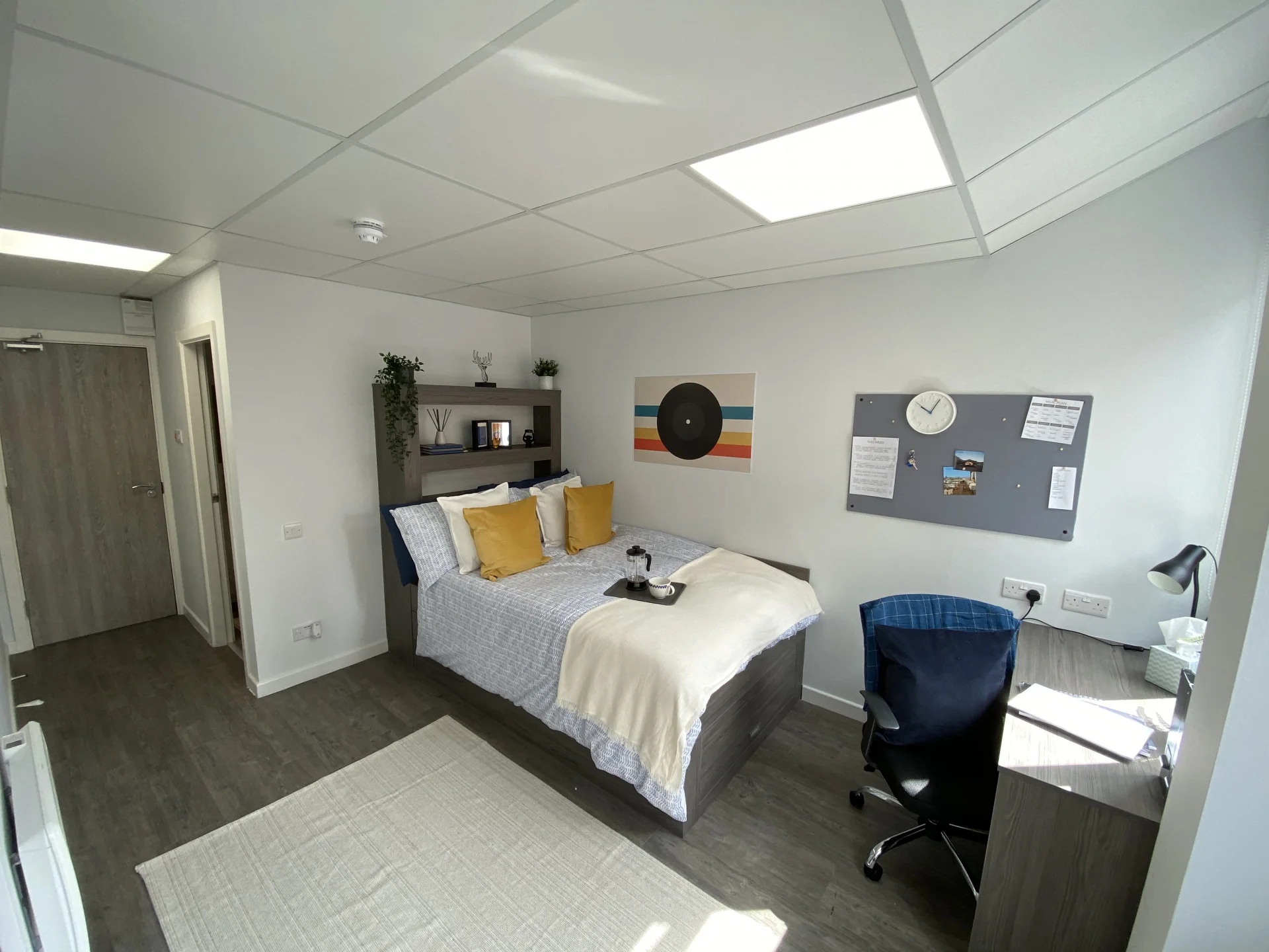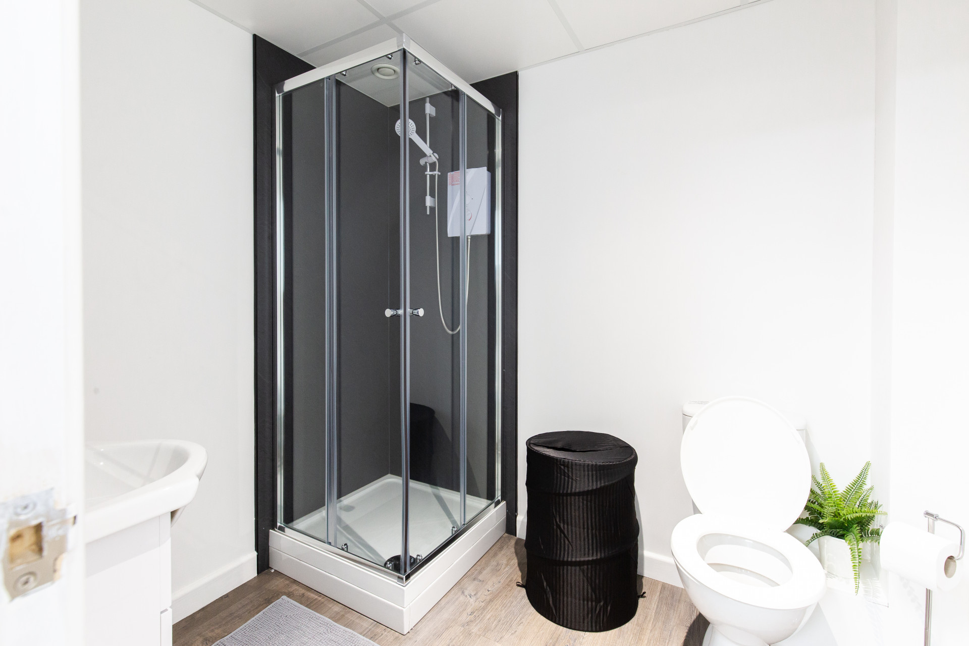 All rooms are en-suite with a newly fitted modern bathrooms, Each cluster has a large kitchen equipped with 2 hobs and ovens and plenty of fridge and freezer space. There is also a large lounge, with a 50 inch TV a huge corner sofa. There is also an additional common area located on the ground floor for use of all tenants. This means there is plenty of space to relax outside of your room. Features En suite bathroom Bed with storage underneath Large wardrobe Study desk Large shared kitchen Kitchen fully equipped with kitchen appliances, such as 2 ovens, 2 toasters, 2 kettles etc. Large shared living area Laundry facilities Additional common room on the ground floor Indoor bike store