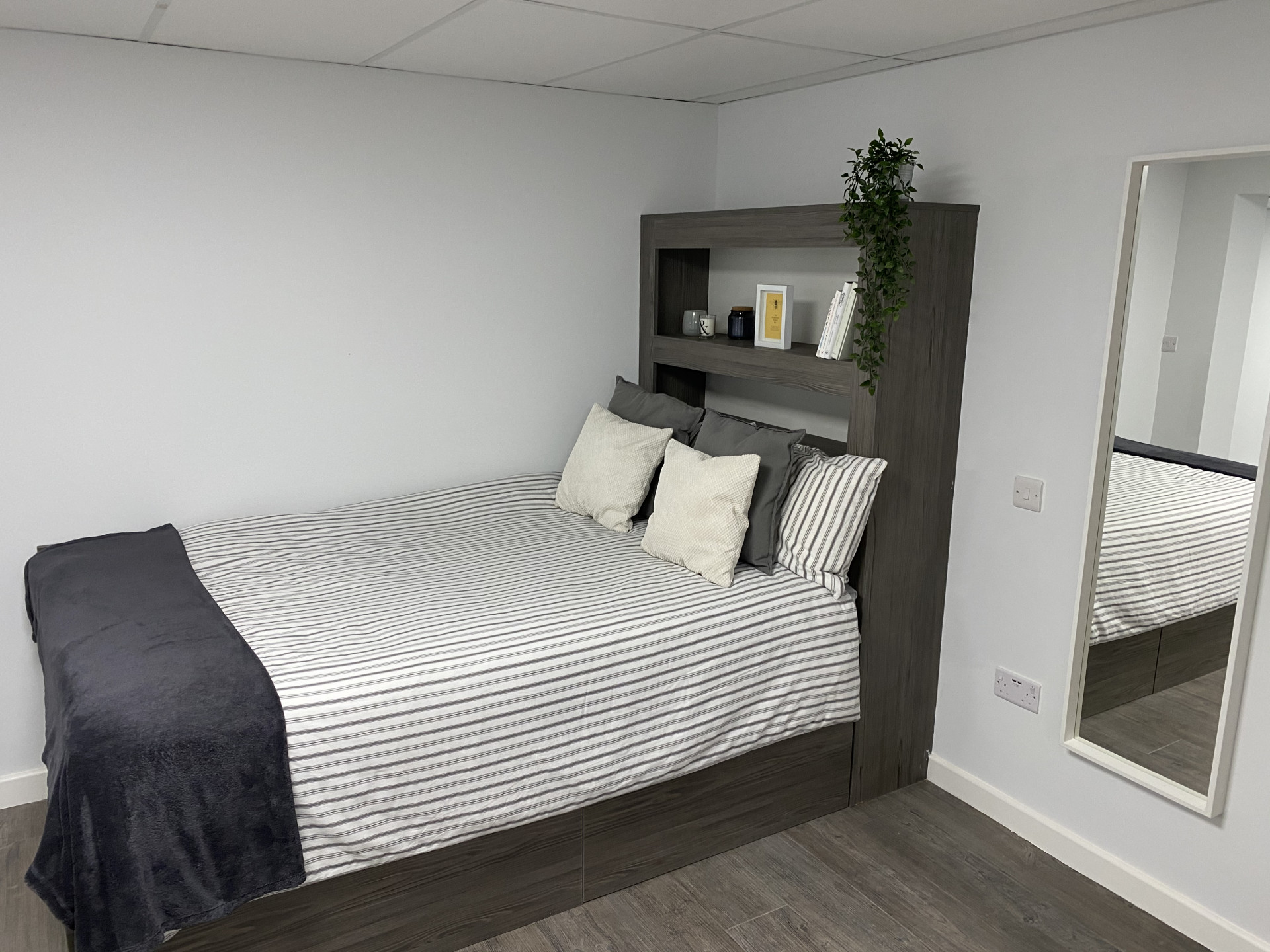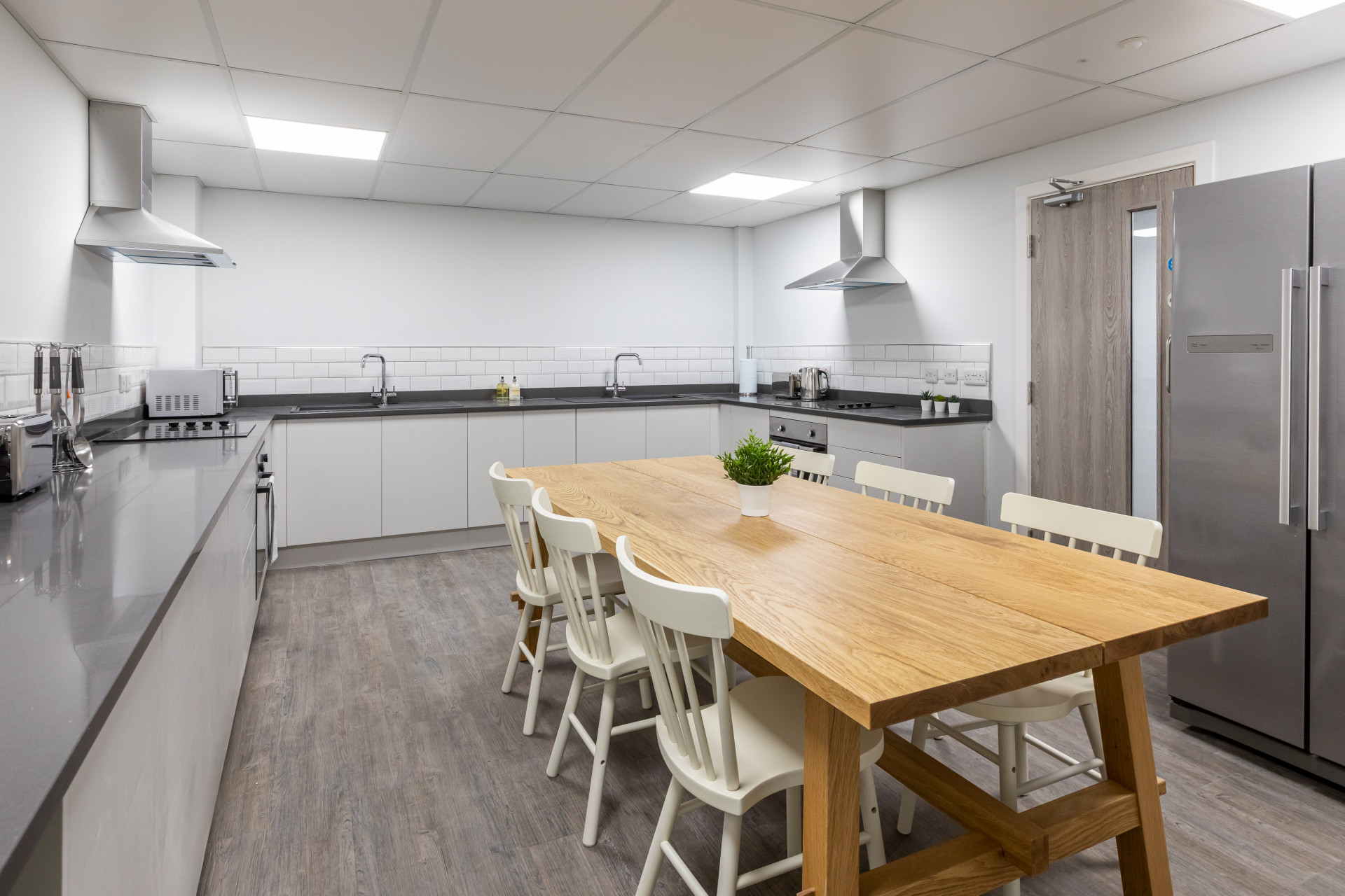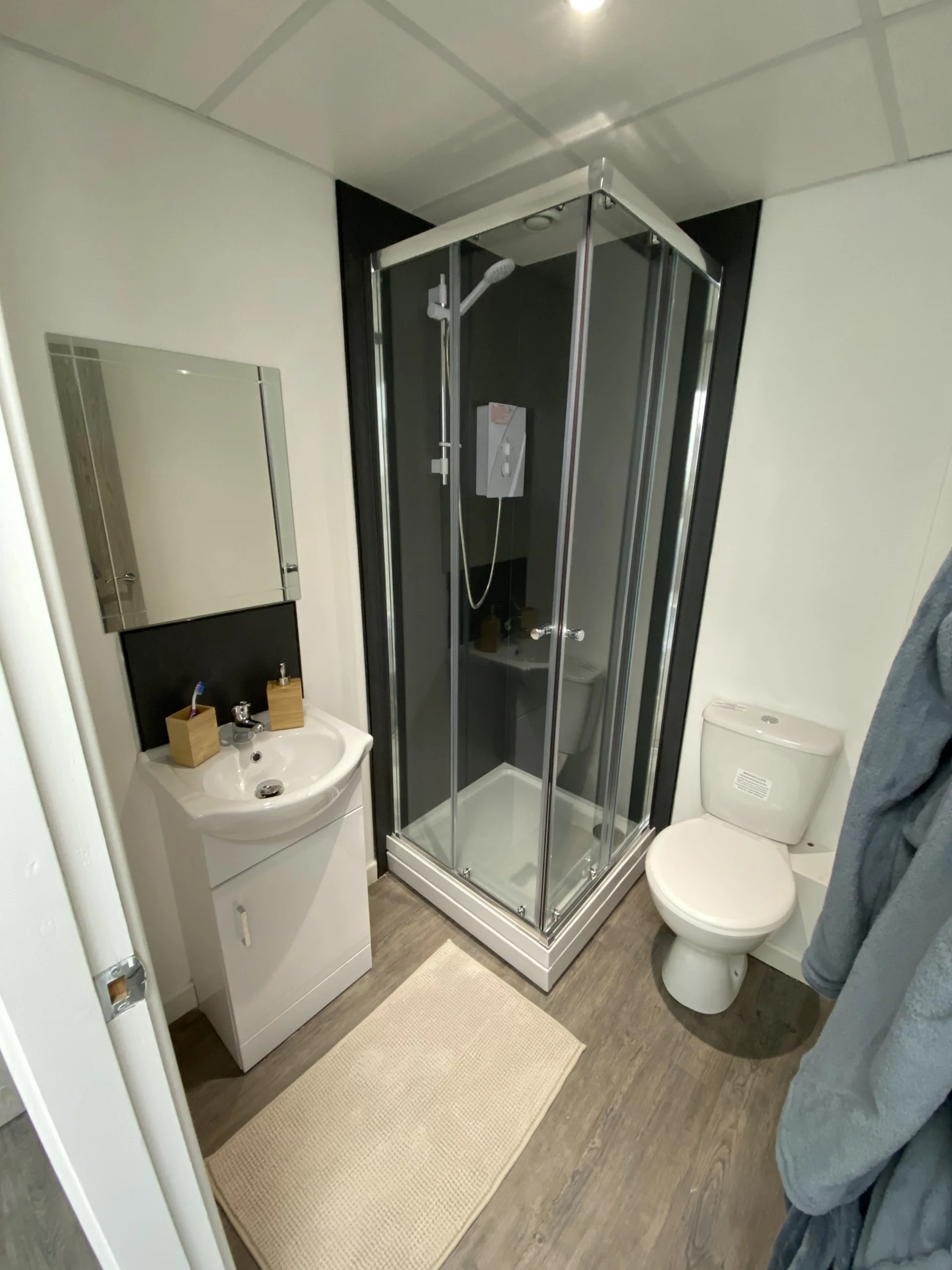 All rooms are en-suite with a newly fitted modern bathrooms, Each cluster has a large kitchen equipped with 2 hobs and ovens and plenty of fridge and freezer space. There is also a large lounge, with a 50 inch TV a huge corner sofa. There is also an additional common area located on the ground floor for use of all tenants. This means there is plenty of space to relax outside of your room. The price of the corner room is £170 per week for a 44, 48 or 51 week contract, which includes all utilities and wifi.