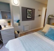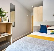 These newly refurbished rooms are equipped with a small double bed, study desk and chair, storage and an en suite shower room – all you need to settle into student life.