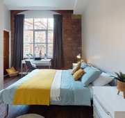 FLET250-031125Perfect for two friends sharing, these great apartments have a spacious open-plan living room and fully fitted kitchen, shared bathroom and two well-sized double bedrooms. Your flat comes with a spacious open-plan living room and kitchen with sofa, coffee table, dining table and chairs, while each double bedroom is kitted out with lots of storage and study desk and chair. The bathroom is shared with your flatmate, and use of Lambert & Fairfield House’s facilities across the road is included, such as its gym, cinema and gaming and karaoke room.
