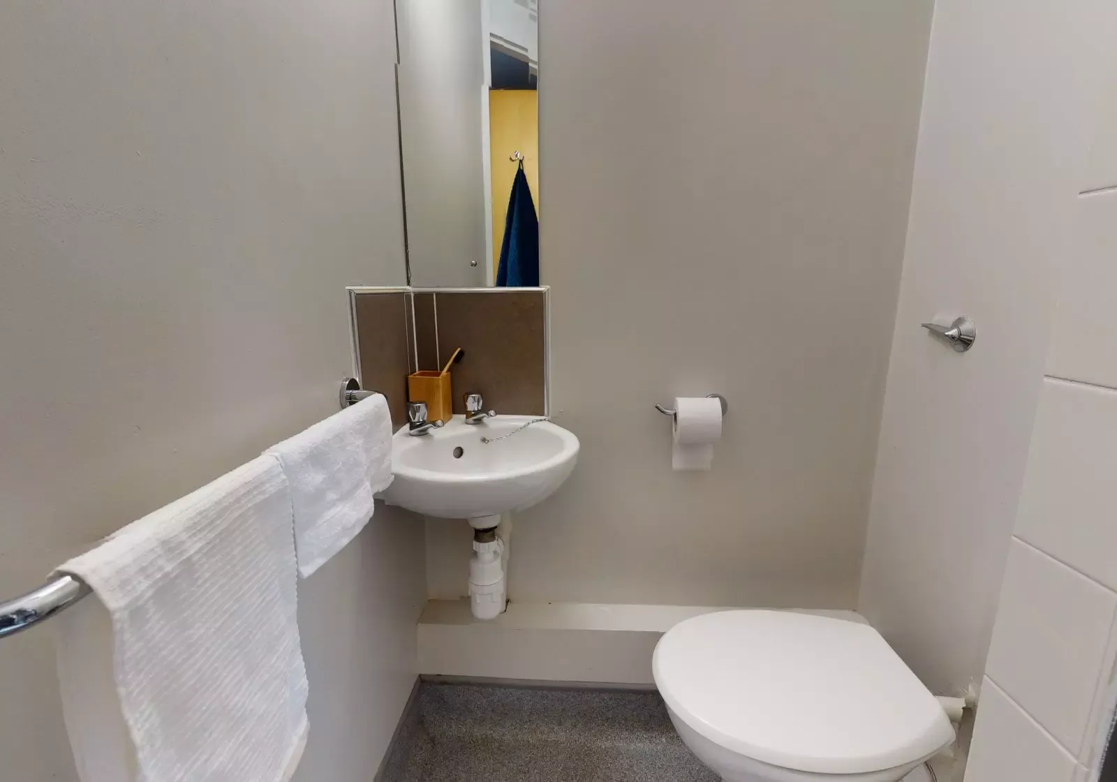 LAMB200-031125For those wanting a more private space, these great 13 sq m mini-studios come with private bathroom, small double bed, microwave, fridge freezer and TV. Your room comes with lots of storage, private shower, toilet and sink and use of a fully equipped shared kitchen and living space for a social vibe. Added building perks include a cinema, gym, laundry and karaoke and games room.
