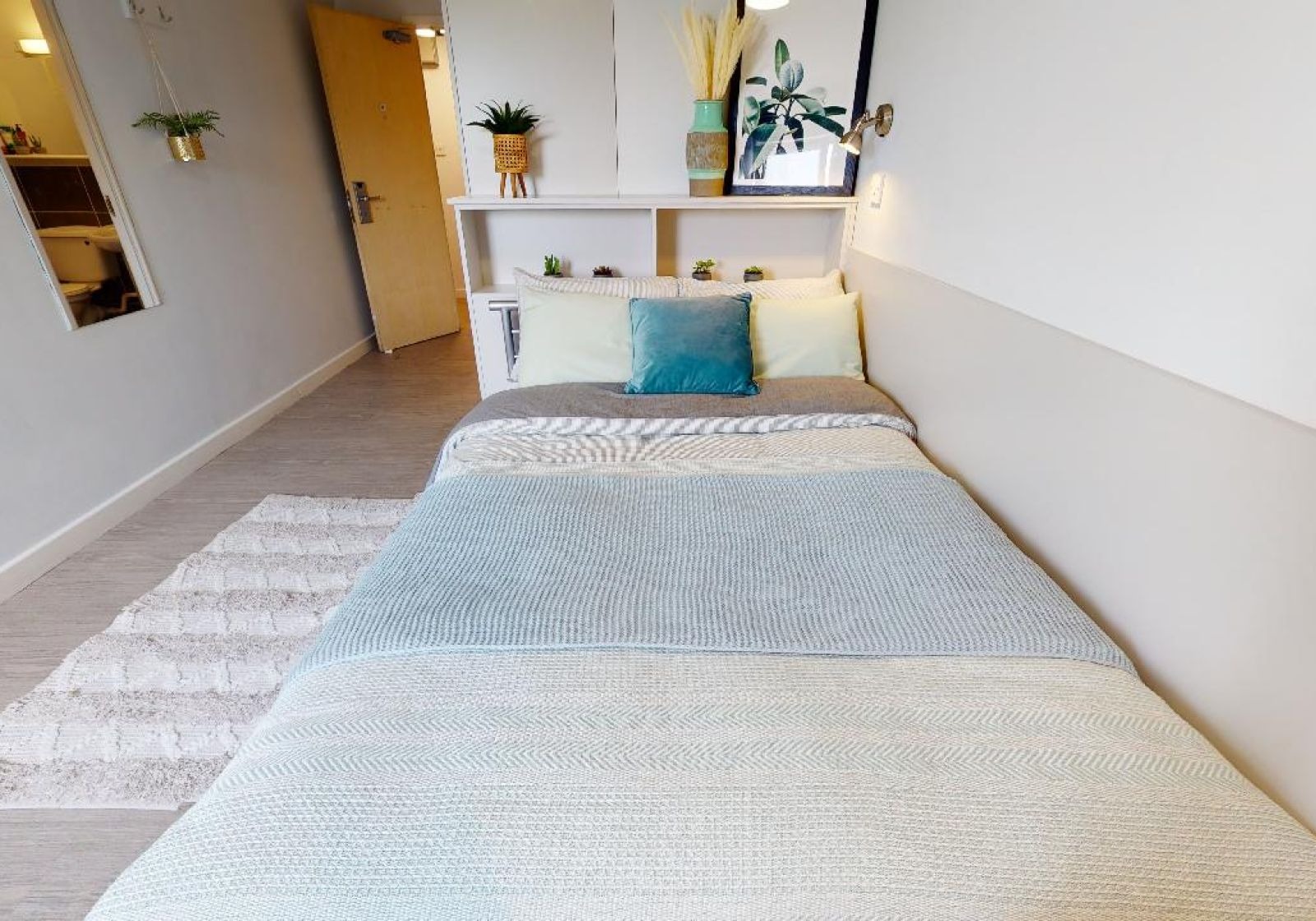 WILM200-031125No need to compromise on the essentials with these great value rooms. They give you 16 sq m of space with full-size double bed and private bathroom. Your room comes with use of a spacious, modern open-plan kitchen and living room which you’ll share with your flatmates. With corner sofa, dining table, TV and all the essential kitchen equipment, you’ll have everything you need