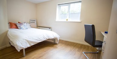 A well-equipped room completed with a ¾ double bed, a study desk & chair so you can crack on with work in a quiet environment. Cook your meals in the shared kitchen or chill out in the lounge area with your mates.