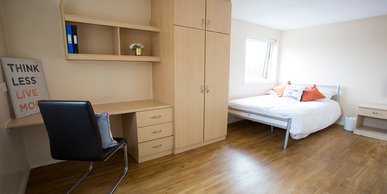 A well-equipped Gold room with a ¾ double bed, your own study desk & chair so you can crack on with work in a quiet environment. Cook your favourite meals in the shared kitchen or chill out in the lounge area with your mates.