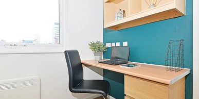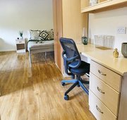 A Spacious self-contained studio with a ¾ double bed, study desk and wardrobe. The studio has a modern kitchen with integrated facilities, En-suite bathroom, lounge area with a plasma TV and up to 100Mbps WIFI.