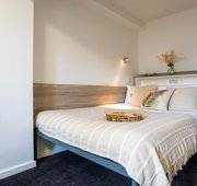 The Bronze Studio is a small open-plan studio, containing a small double bed, study desk and chair, wardrobe, shelving, en-suite and kitchen/lounge area. It’s a great option for students who want to have their own private space in a large studio, but still want to live in a vibrant student community!