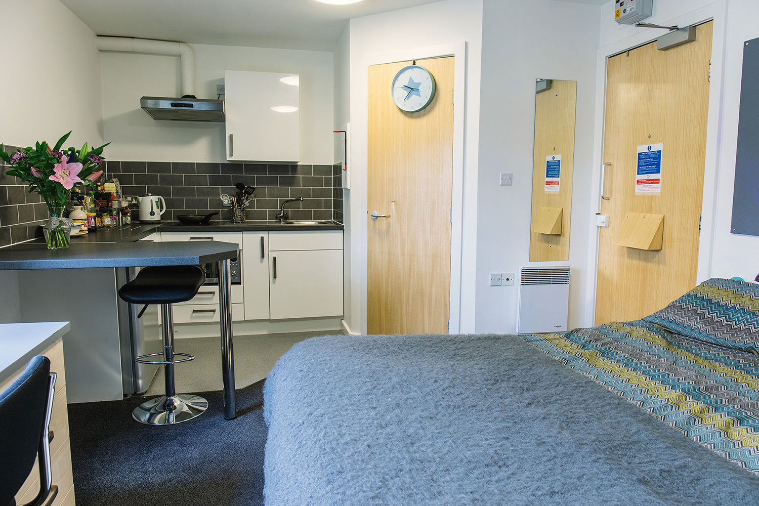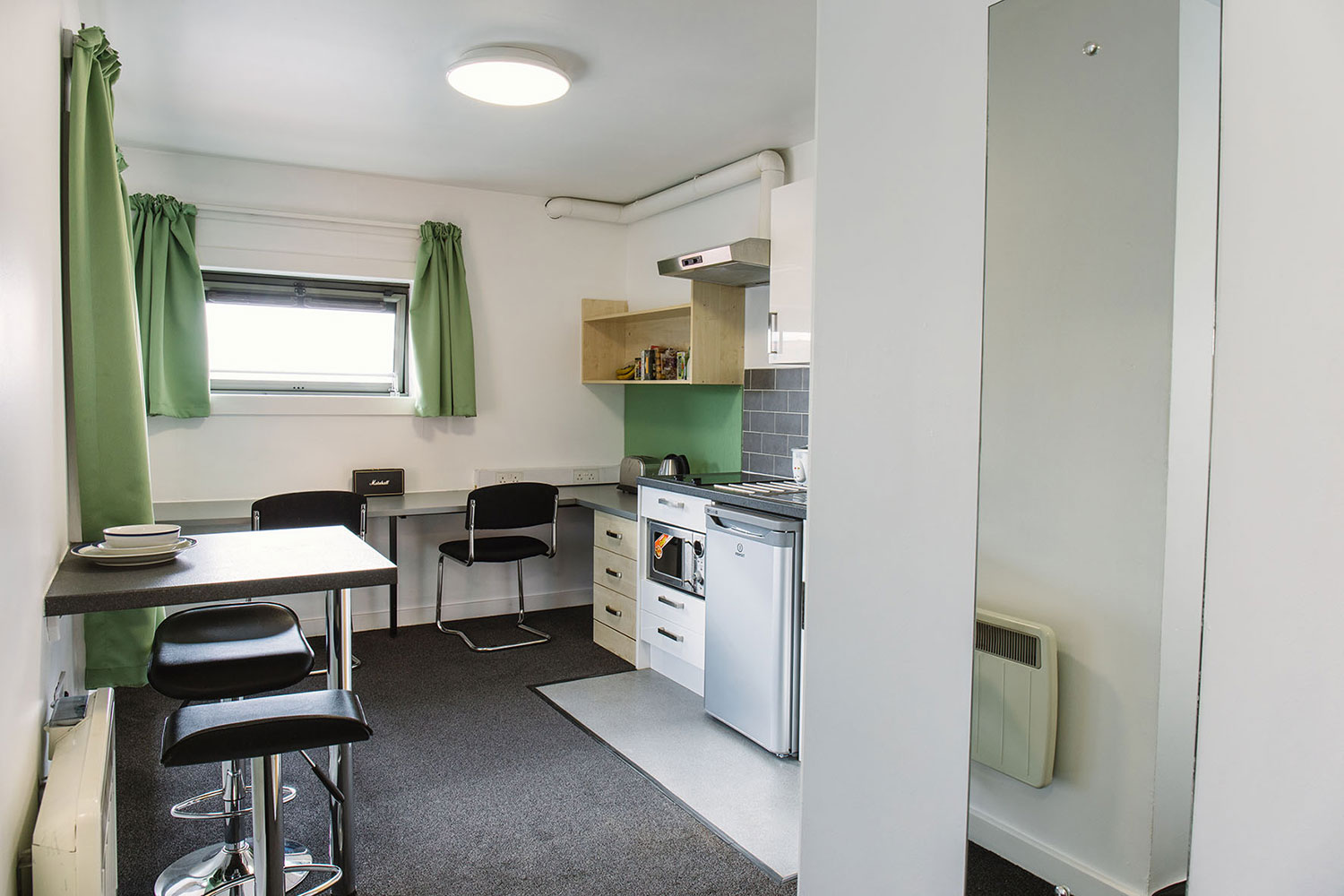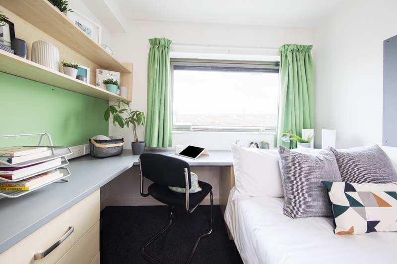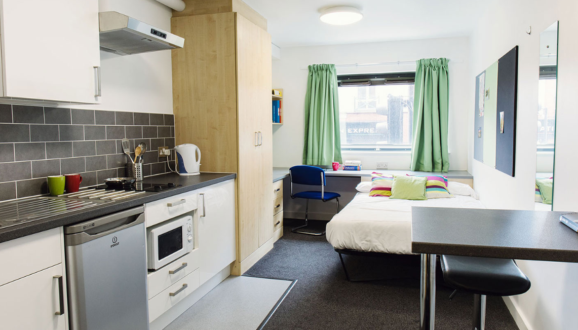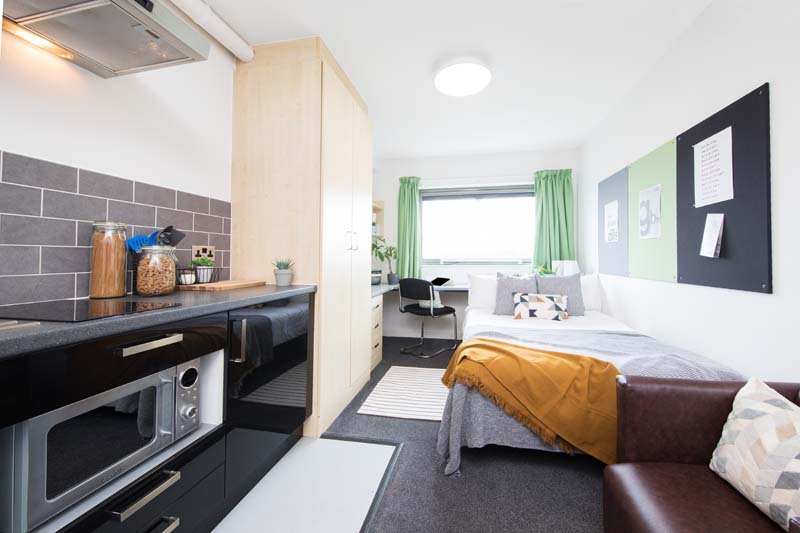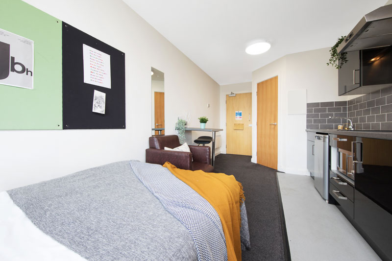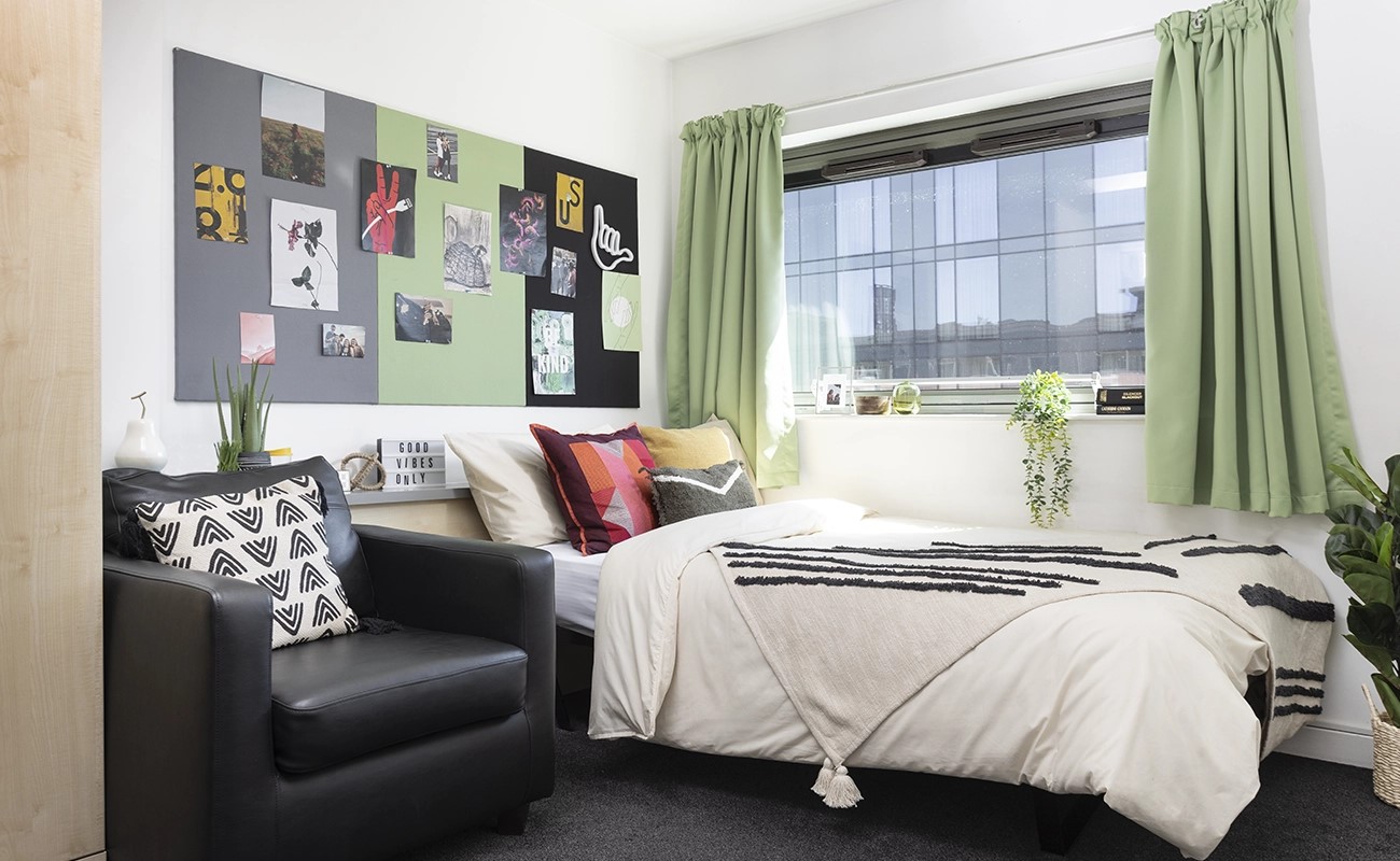 If you are staying in Manchester Sir Charles Groves Hall is a fantastic accommodation choice. The classic studios offer self-contained living spaces with a private bathroom and a kitchenette. These rooms are ideal for students seeking privacy and convenience. Sir Charles Groves Hall Manchester also offers a classic accessible studio which is a modified version of the classic studio to meet additional needs. Both of these room types include a fridge freezer, breakfast bar, ventilation system, wardrobe, noticeboard, full-length mirror, and a sofa.