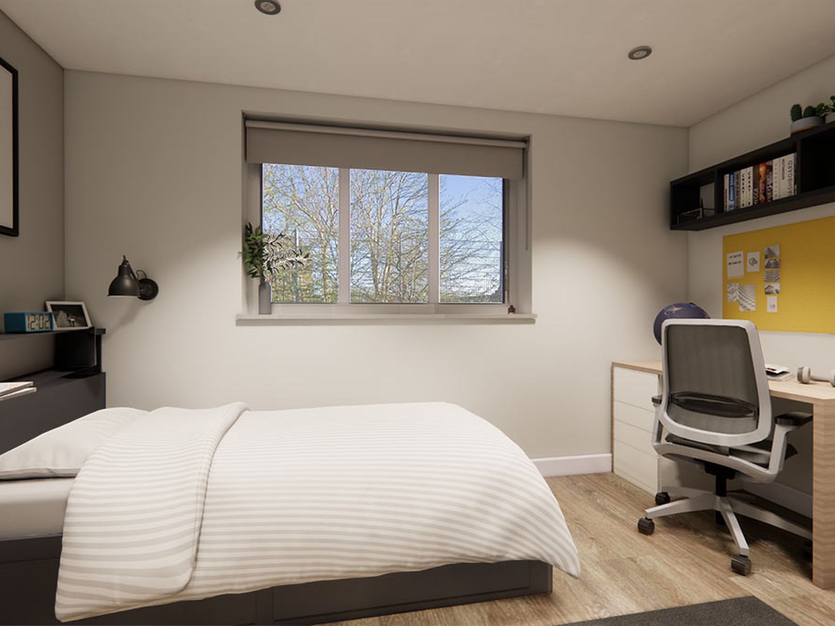 Students in Machester who prefer independence can choose studio accommodation. A studio includes a spacious bedroom and study area. A private bathroom and kitchenette provide comfort and self-contained living. A studio room in Manchester student accommodation ensures complete privacy.