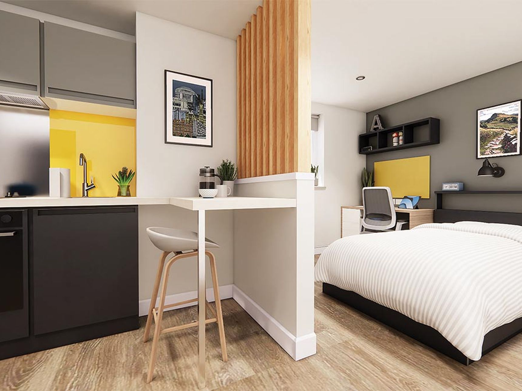 Students in Machester who prefer independence can choose studio accommodation. A studio includes a spacious bedroom and study area. A private bathroom and kitchenette provide comfort and self-contained living. A studio room in Manchester student accommodation ensures complete privacy.